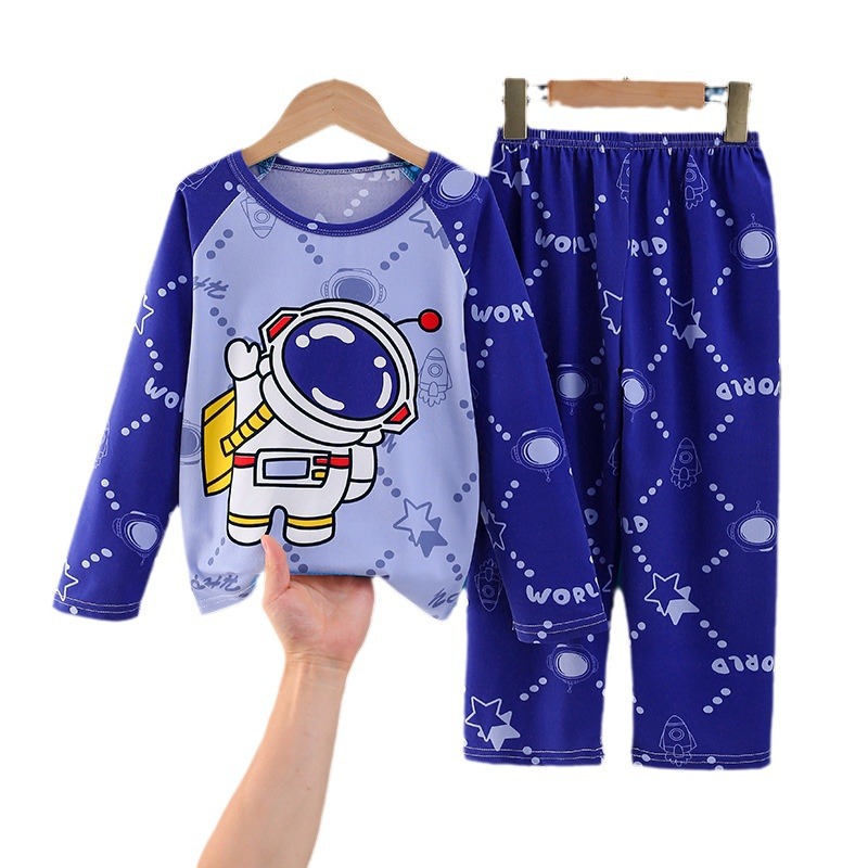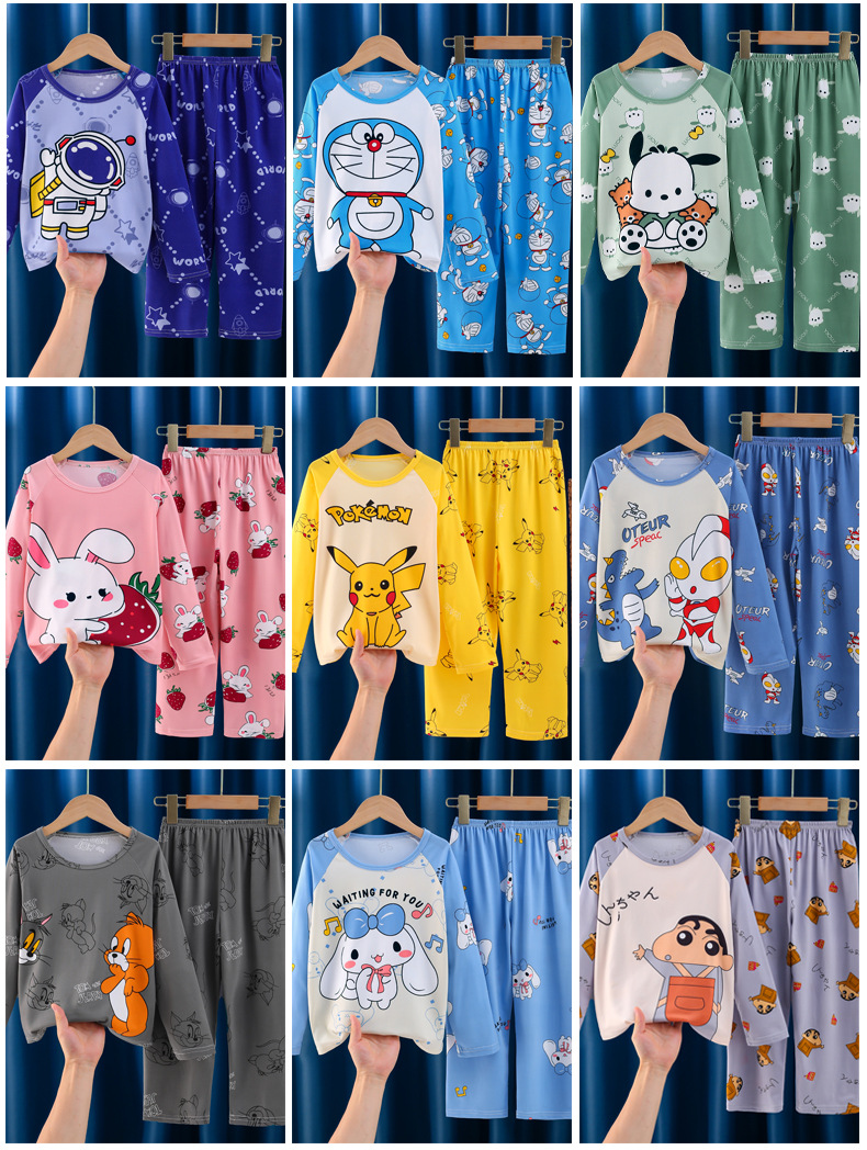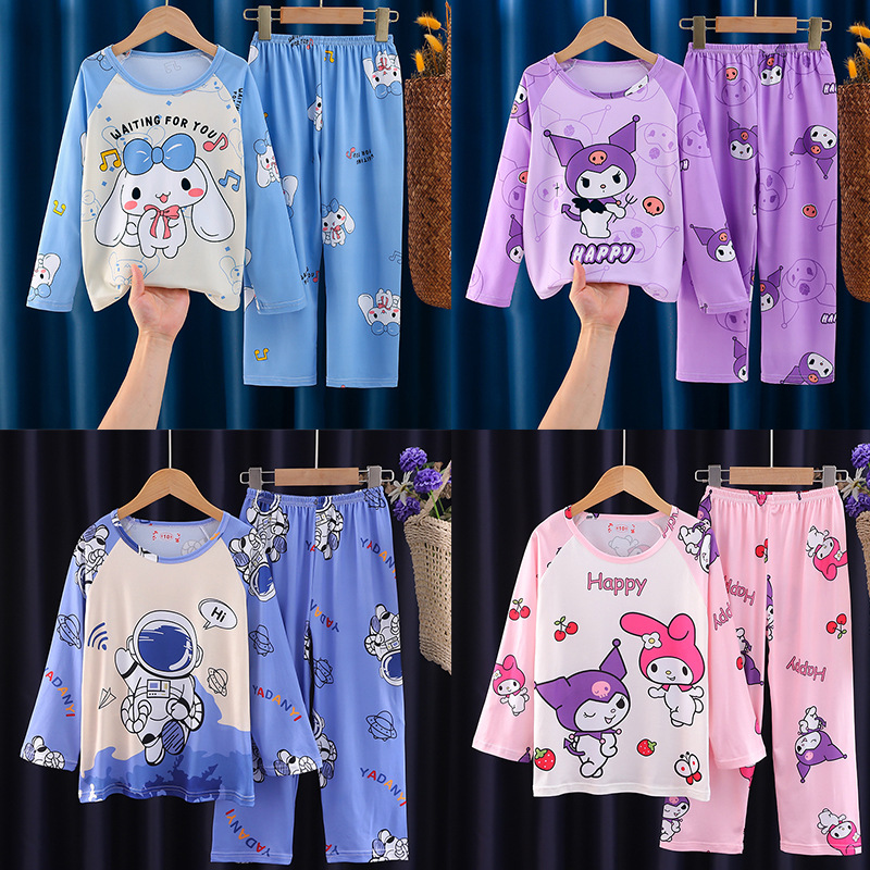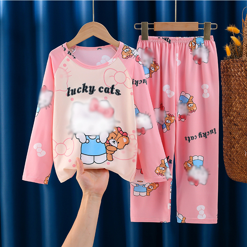 Цельная летняя одежда для мальчиков, домашняя одежда, детские брюки с длинными рукавами, летние девочки, пижамы для средних и больших детей, тонкий костюм