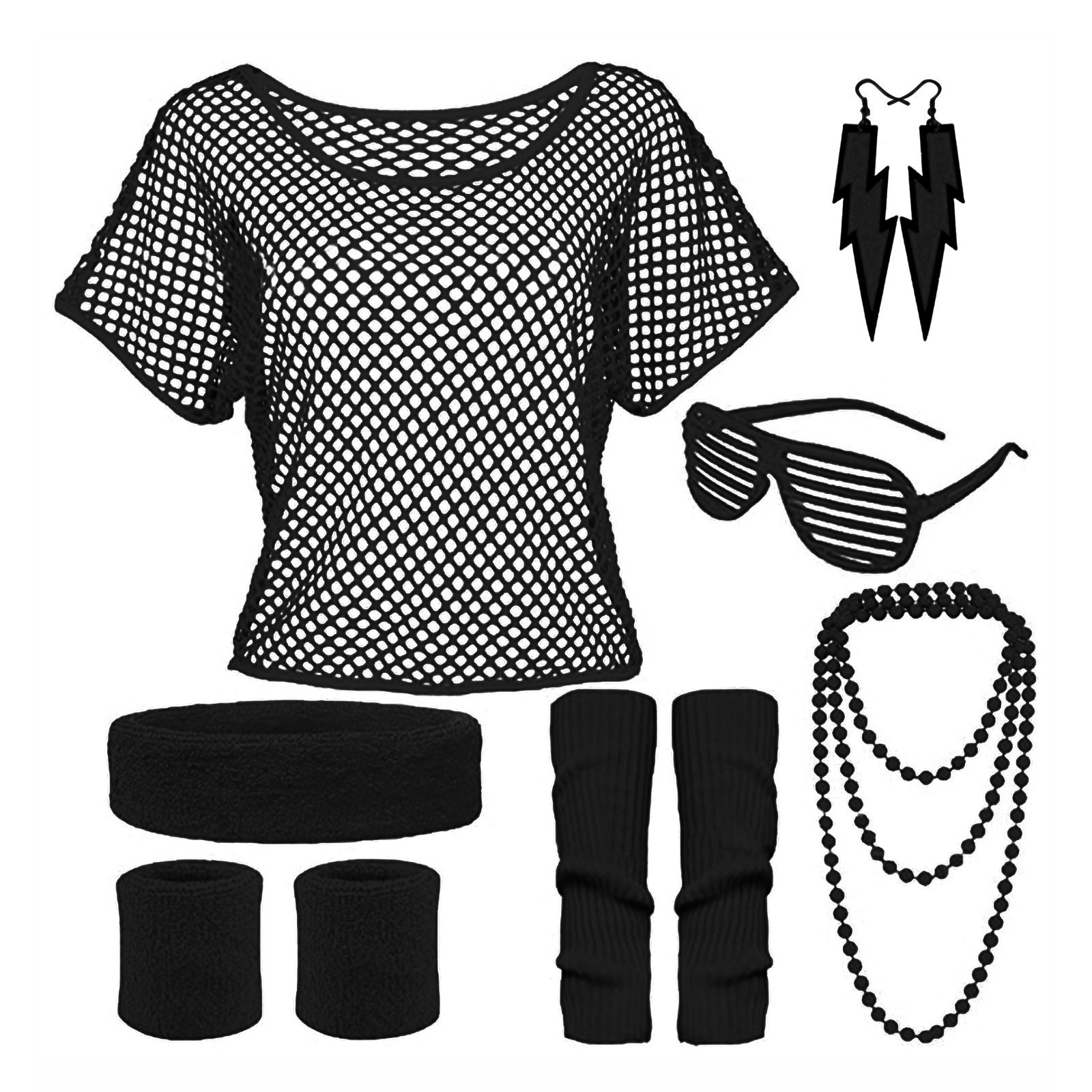 70-летние европейские и американские неоновые вечерние танцевальные ажурные серьги с короткими рукавами, ожерелье, чехлы на ноги, браслет, очки, комплект из семи предметов