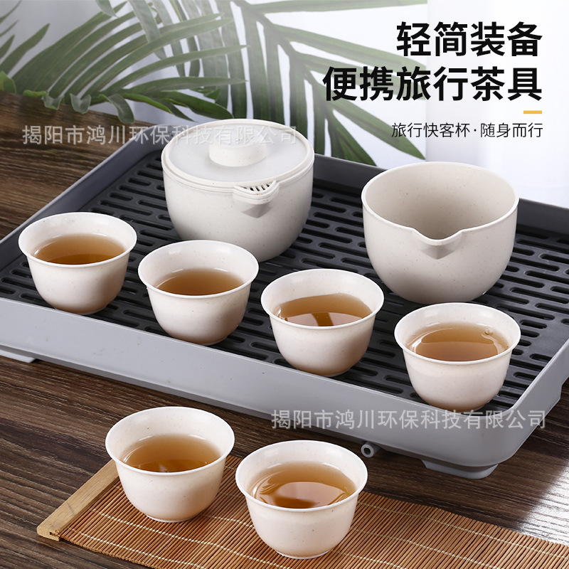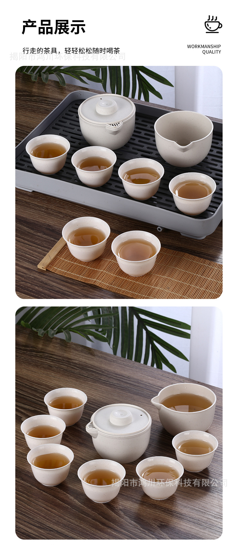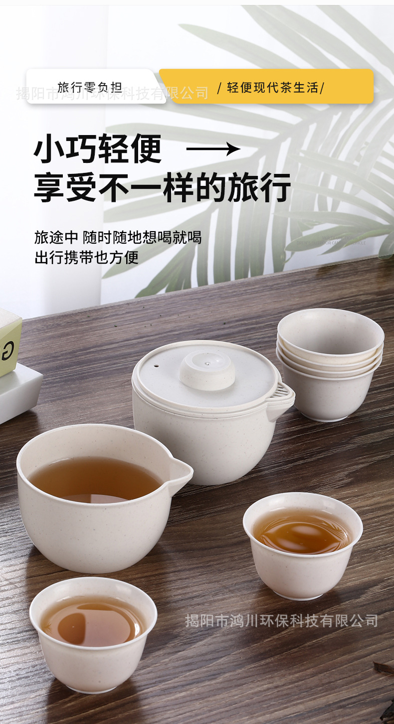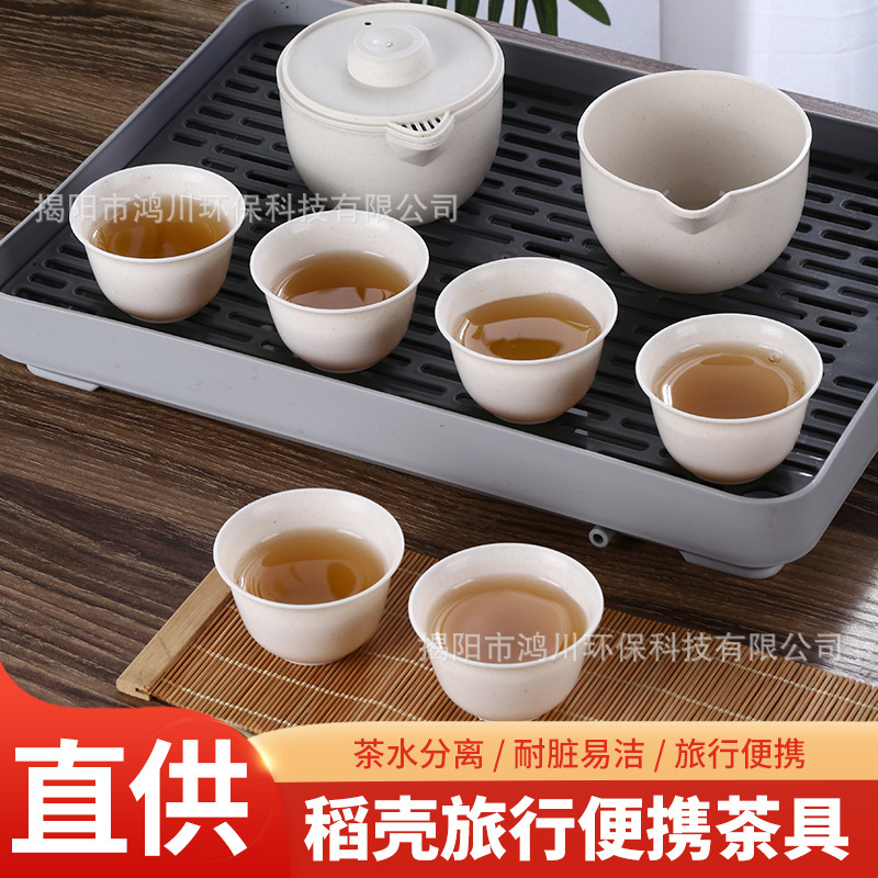 Набор для чаепития в стиле кунг-фу, дорожный набор, одноразовый чайный набор из рисовой шелухи, портативный, удобный для хранения, утолщенный, с защитой от ожогов, для пикника на природе и вечеринок.