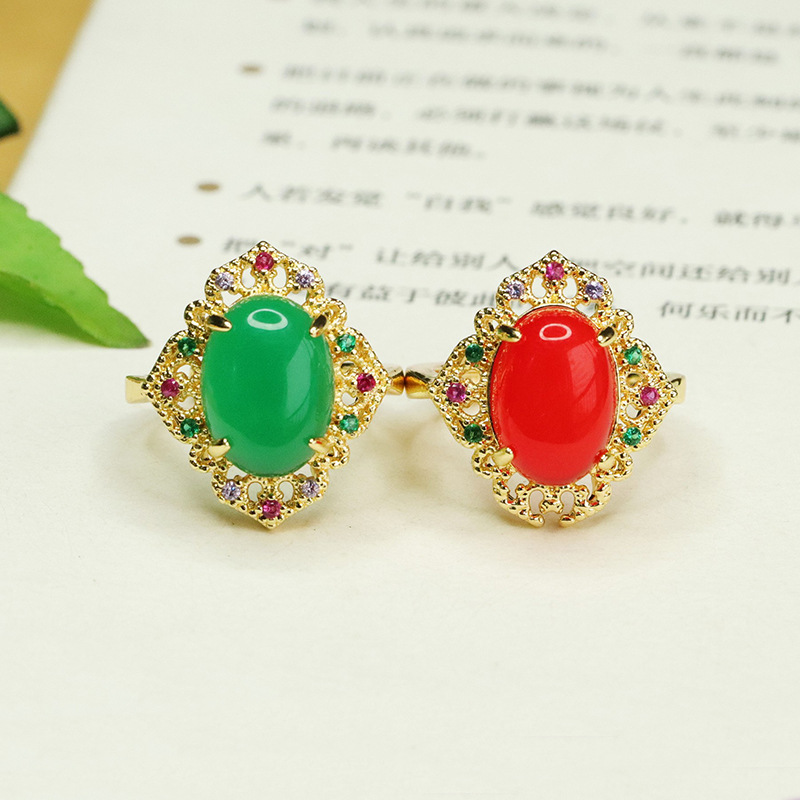 Aiyu ледяные виды зеленый халцедон кольцо красный агат кольцо кольцо, дворцовый ветер фабрика оптом AY4012605