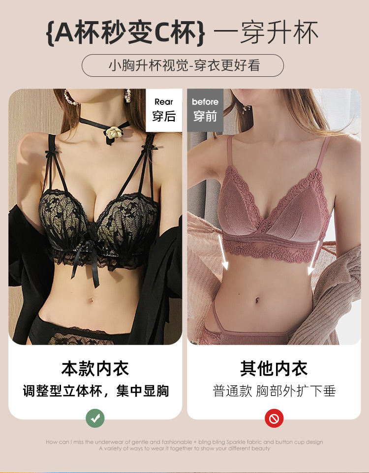 Нижнее белье новой девушки из латекса 2024 Новый сексуальный бюстгальтер с пуш-ап на маленькой груди беспроводной костюм с бюстгальтером Four Seasons