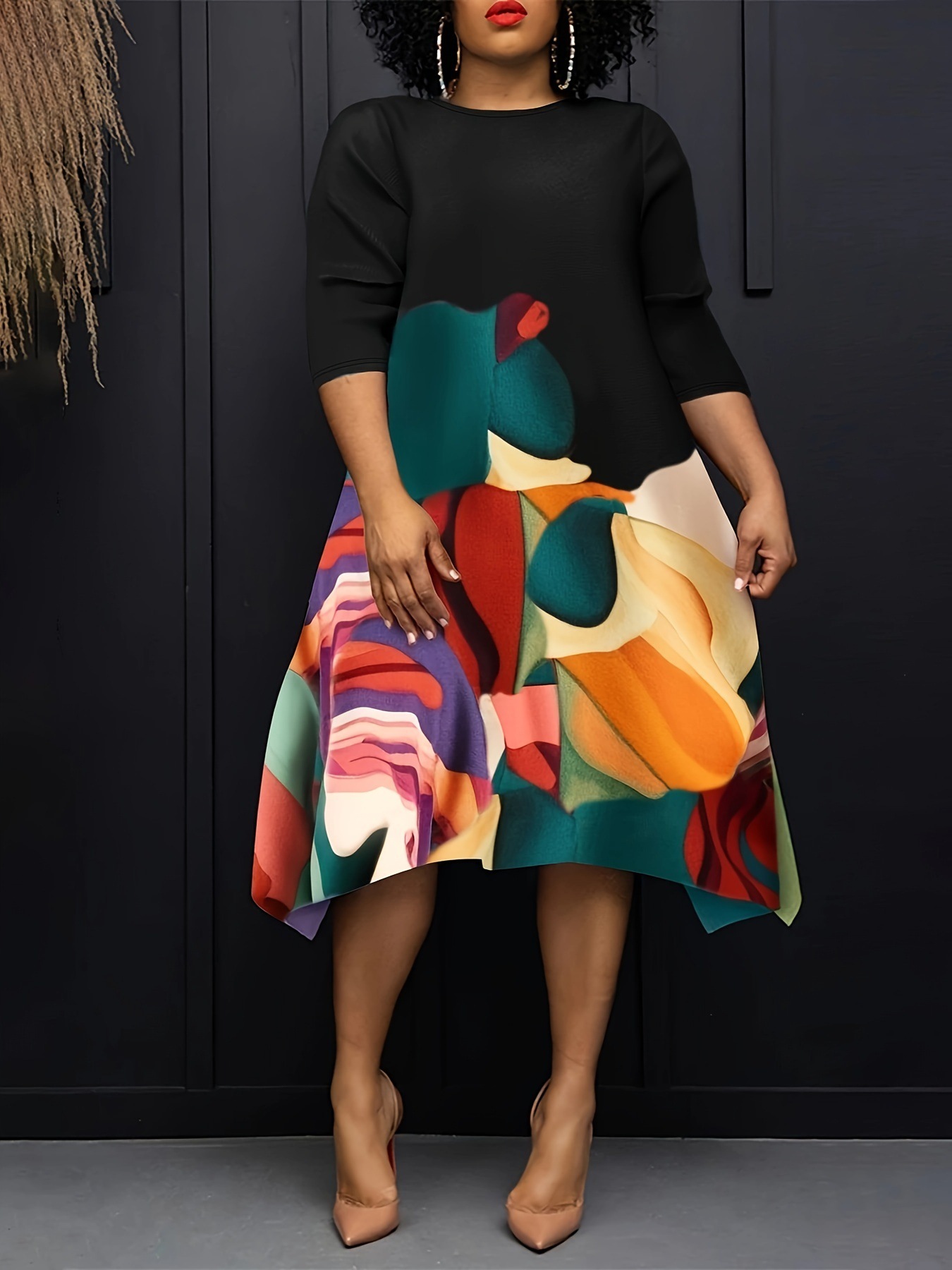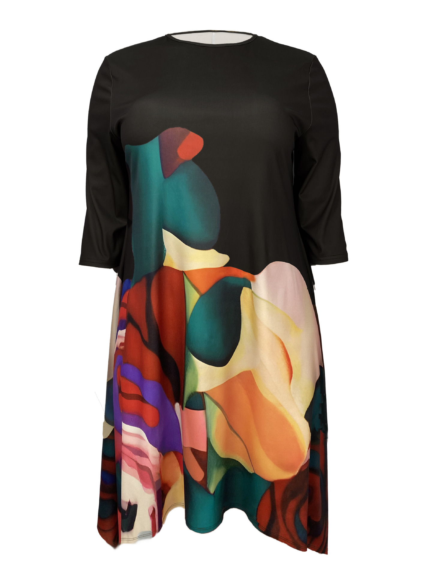 TB5955 Трансграничные Горячая Распродажа плюс размер нерегулярный принт уверенный повседневный черный прямой платьица