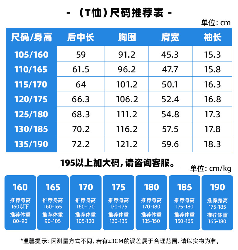 105/160; 110/165; 115/170; 120/175; 125/180; 130/185; 135/190; 140/195