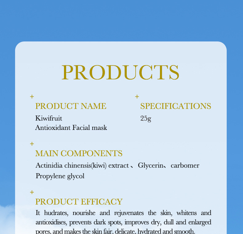 25 г персика (только для внешней торговли); Камелия 25 г (только для внешней торговли); Черника 25 г (только для внешней торговли); 25 г клубники (только для внешней торговли); Роза 25 г (только для внешней торговли); 25 г календулы (только для внешней торговли); Ромашка 25 г (только для внешней торговли); Рисовое пюре 25 г (только для внешней торговли); Зеленый чай 25 г (только для внешней торговли); Алоэ 25 г (только для внешней торговли); Киви 25 г (только для внешней торговли)