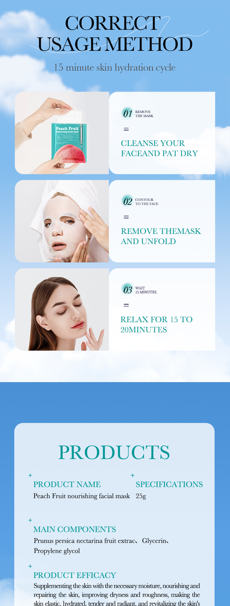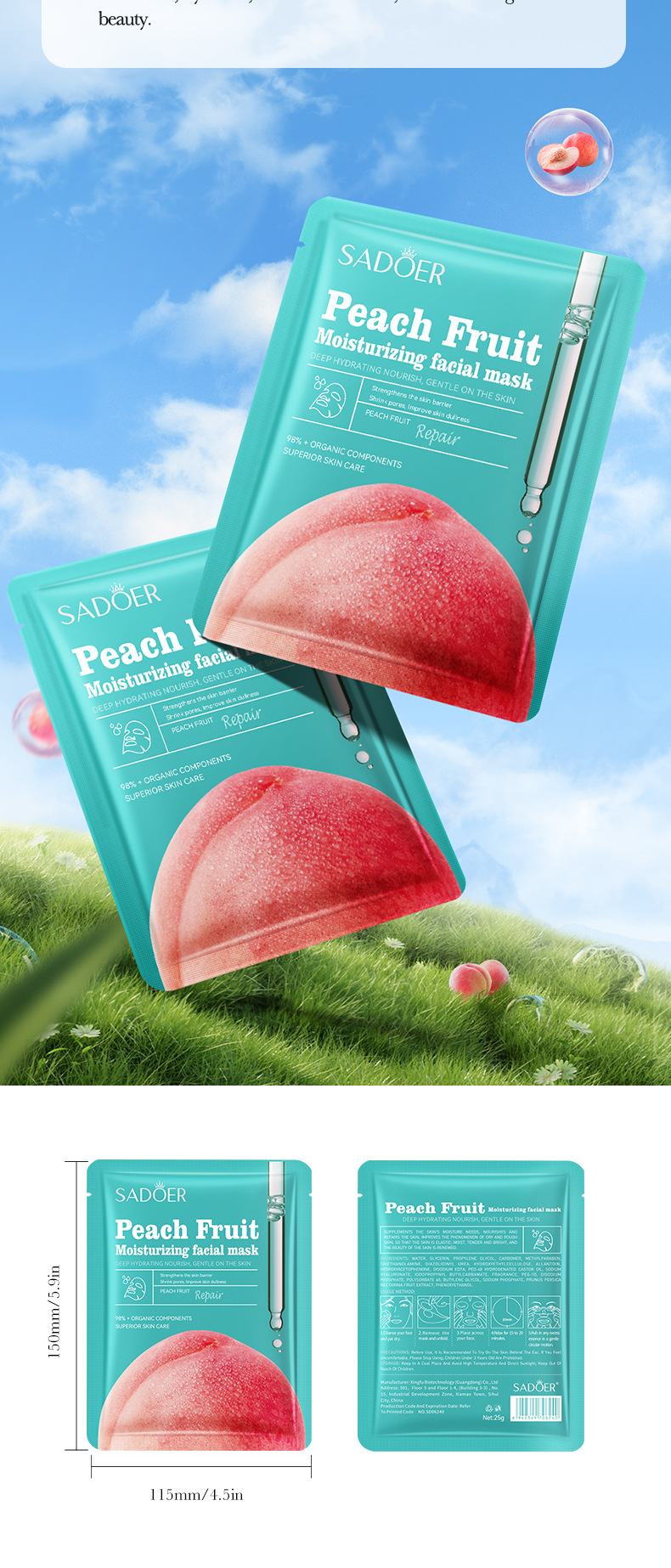 Полностью английская увлажняющая маска SADOER персиковая увлажняющая патч-маска для женщин, трансграничный экспорт, прямые продажи с фабрики