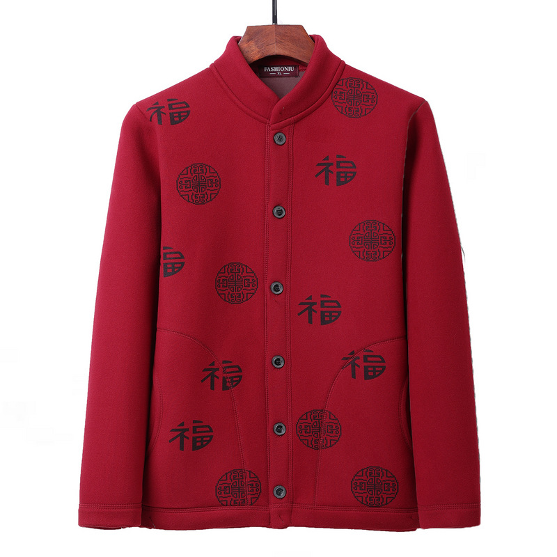 Теплое пальто для среднего и пожилого возраста, мужское весеннее и осеннее пальто с изображением дедушки-фу, утолщенная весенняя одежда на флисовой подкладке