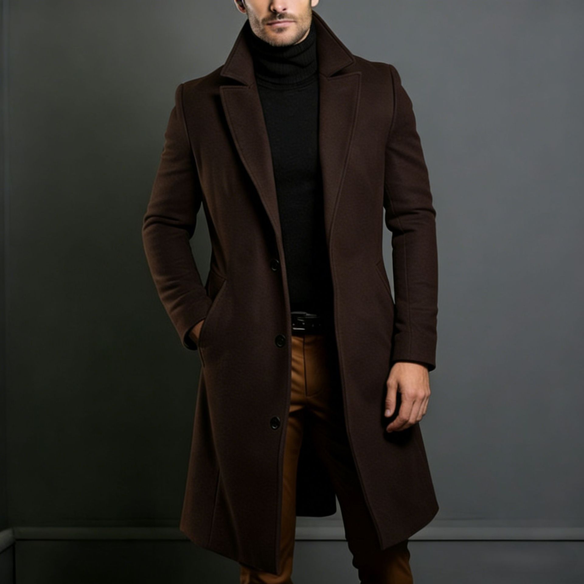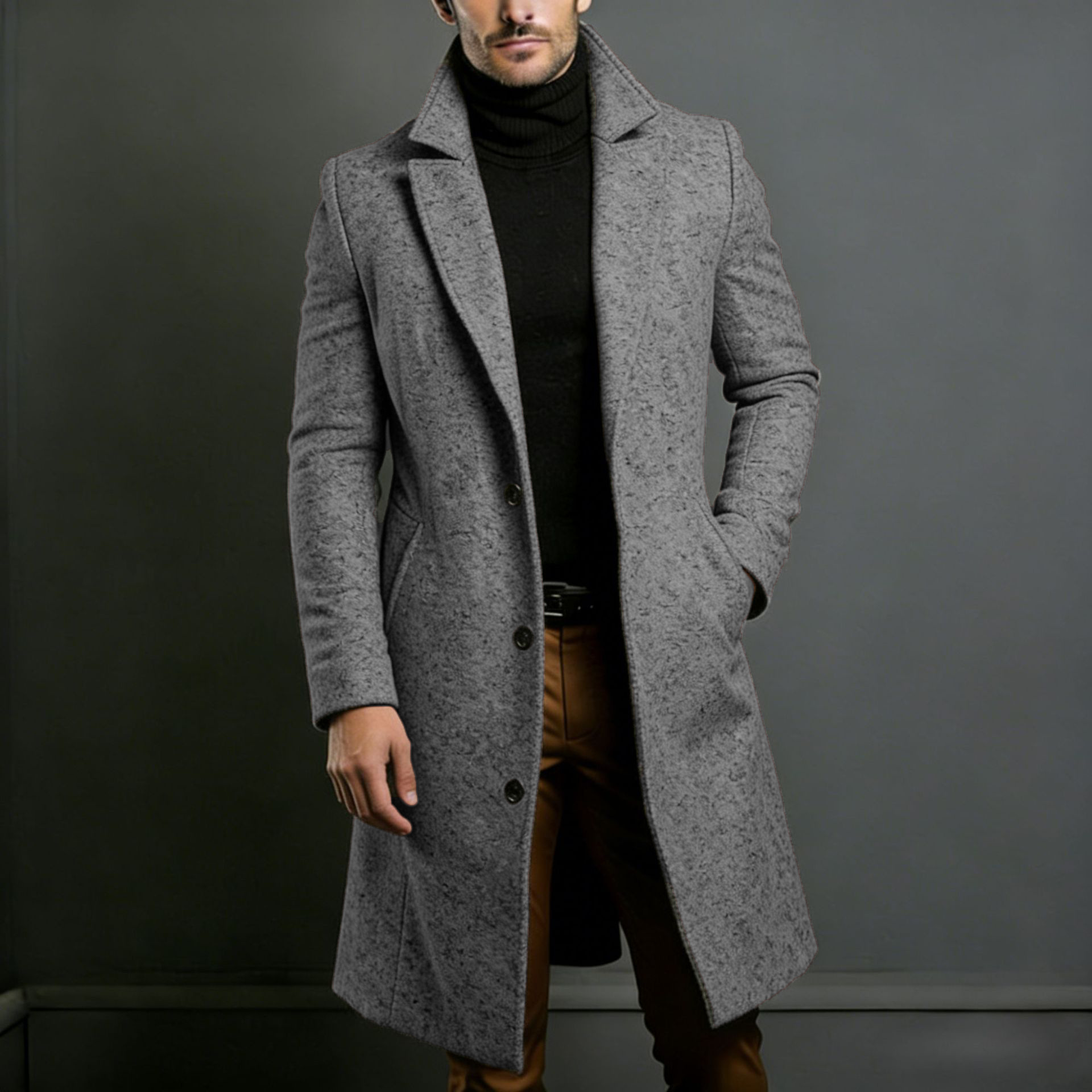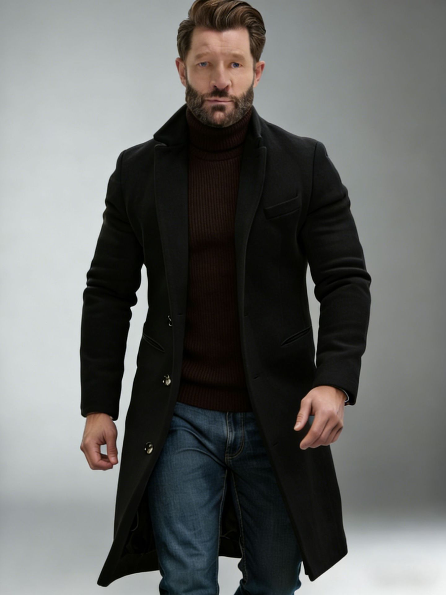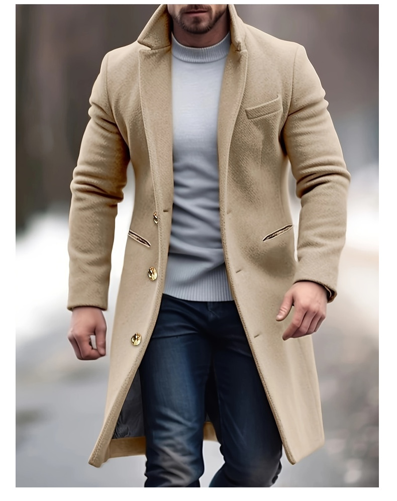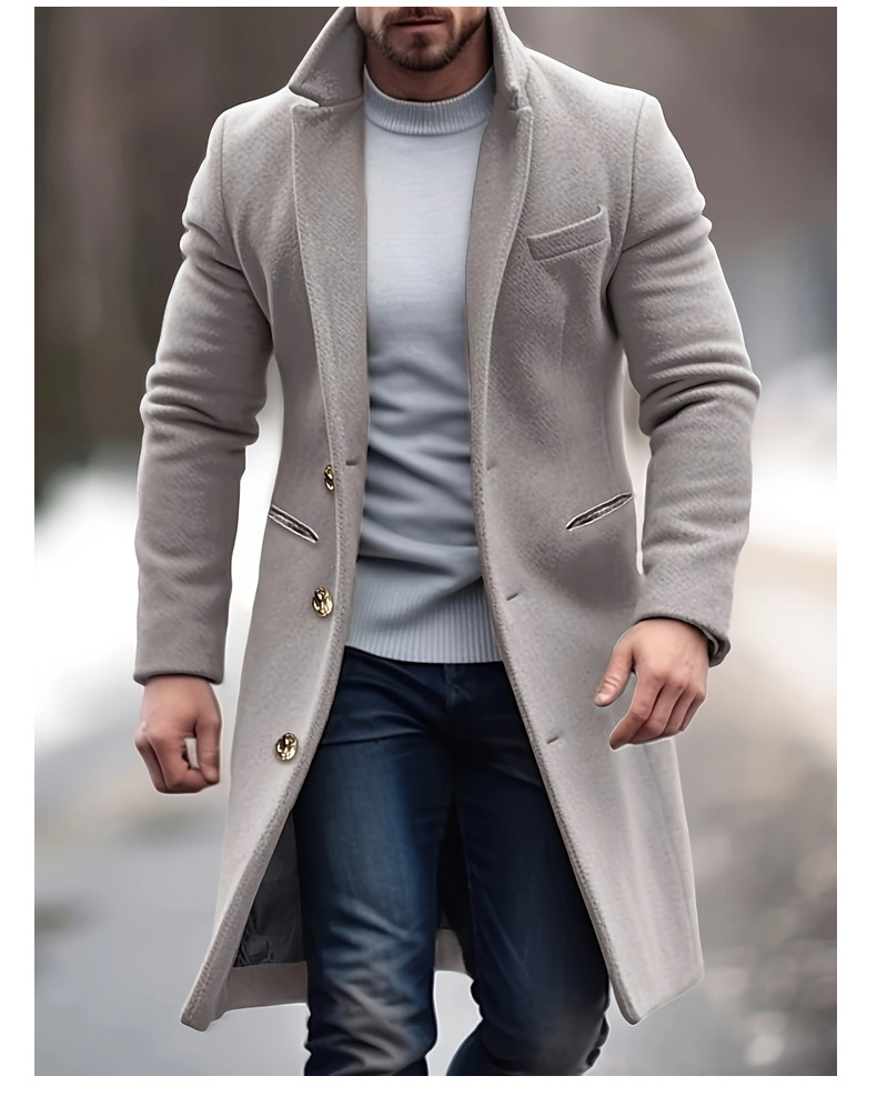 2024 Европейское и американское мужское шерстяное пальто средней длины, приталенного кроя с воротником-стойкой, для зимних поездок на работу.