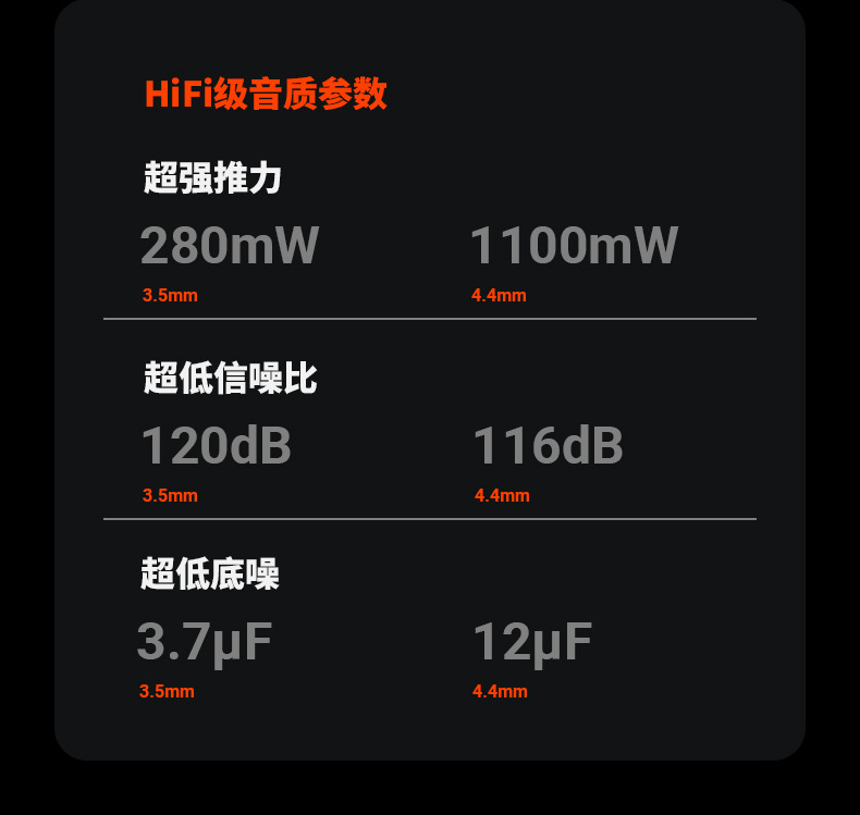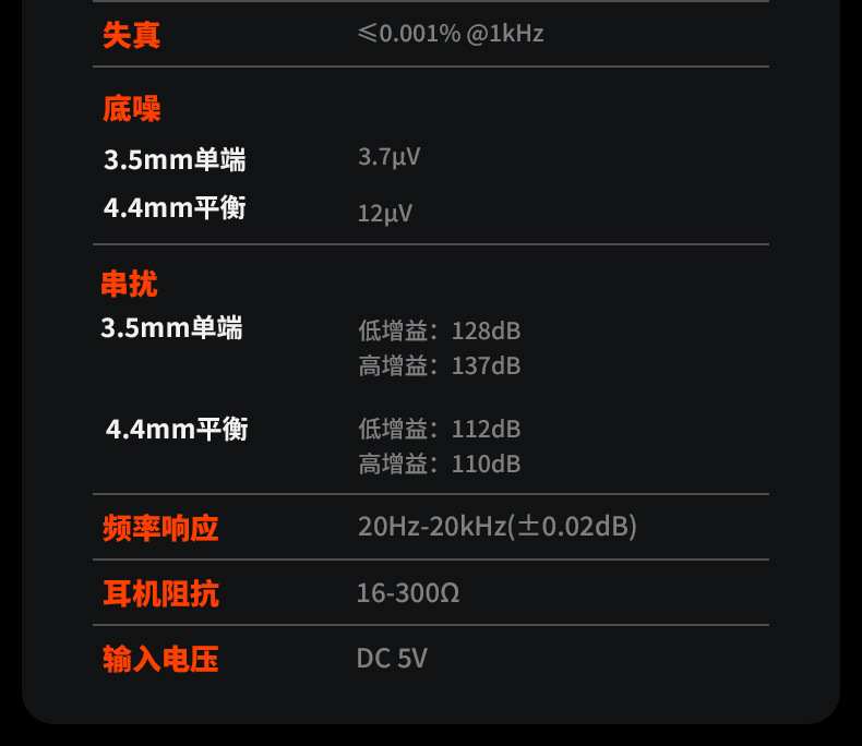 3.5mm порт наушников 4.4mm порт наушников низкий коэффициент усиления: 116dB Высокий коэффициент усиления: 120dB Низкий коэффициент усиления: 110dB Высокий коэффициент усиления: