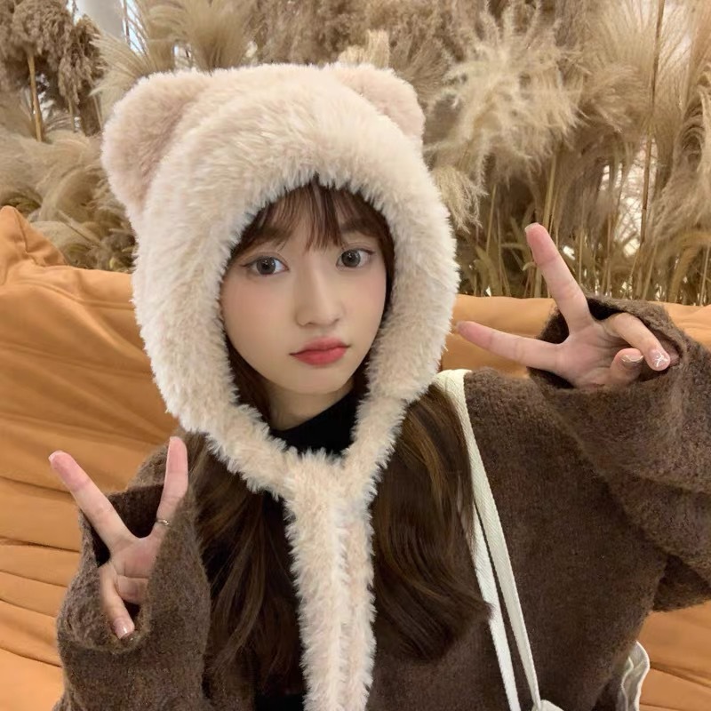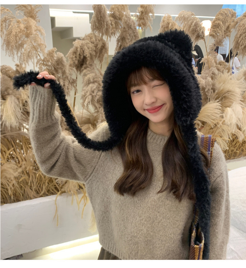 Вязаная шапка с мультяшной защитой ушей теплая шапка для защиты ушей шерстяная шапка зимняя Корейская Милая Кружевная плюшевая шапка с флисовой подкладкой для женщин