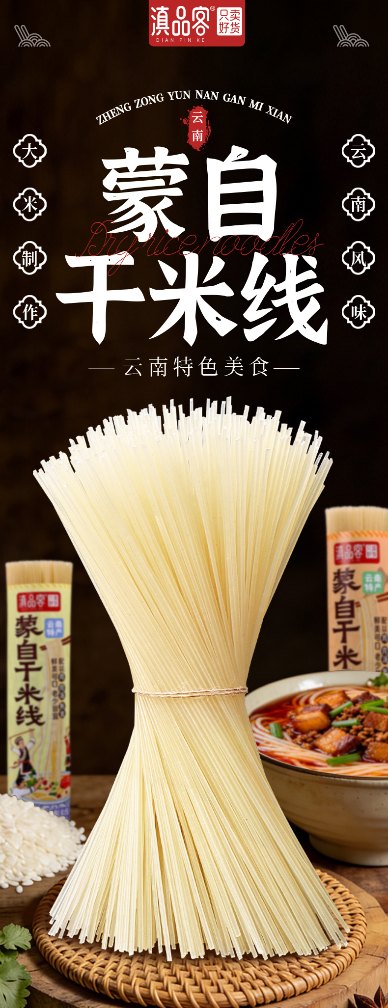 Специализированная рисовая лапша Юньнань Аутентичная чистая сушеная рисовая лапша в толстых пакетах