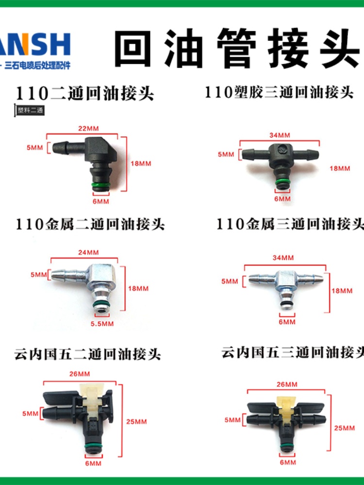 Двусторонний соединитель трубы возврата масла (пластик); Тройник соединитель трубы возврата масла (пластик); Двустороннее соединение трубы возврата масла (металл); Тройник возвратной трубы соединение (металл); Двухсторонний соединитель возврата масла Yunneizuo, пять; Пятиходовой соединитель возврата масла Cloud China