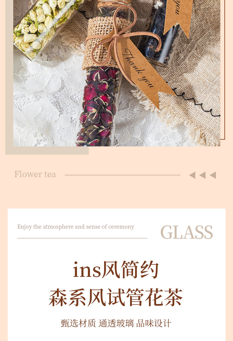 Розовый чай в большой пробирке; Жасминовый чай в большой пробирке; Большая пробирка персикового улунного чая