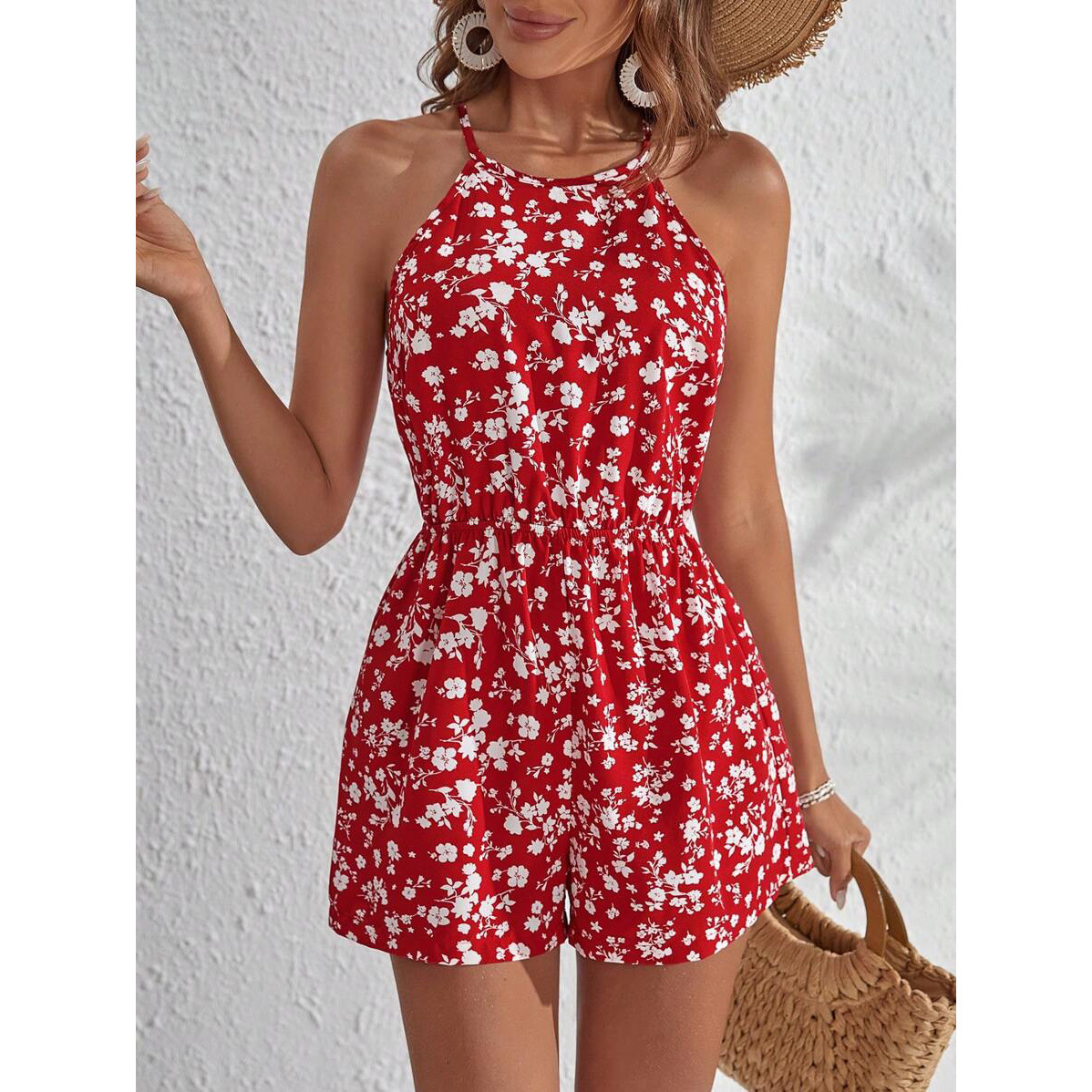 Новый трансграничный комбинезон с лямкой на шее SHEIN VCAY в 2024 году с цветочным принтом