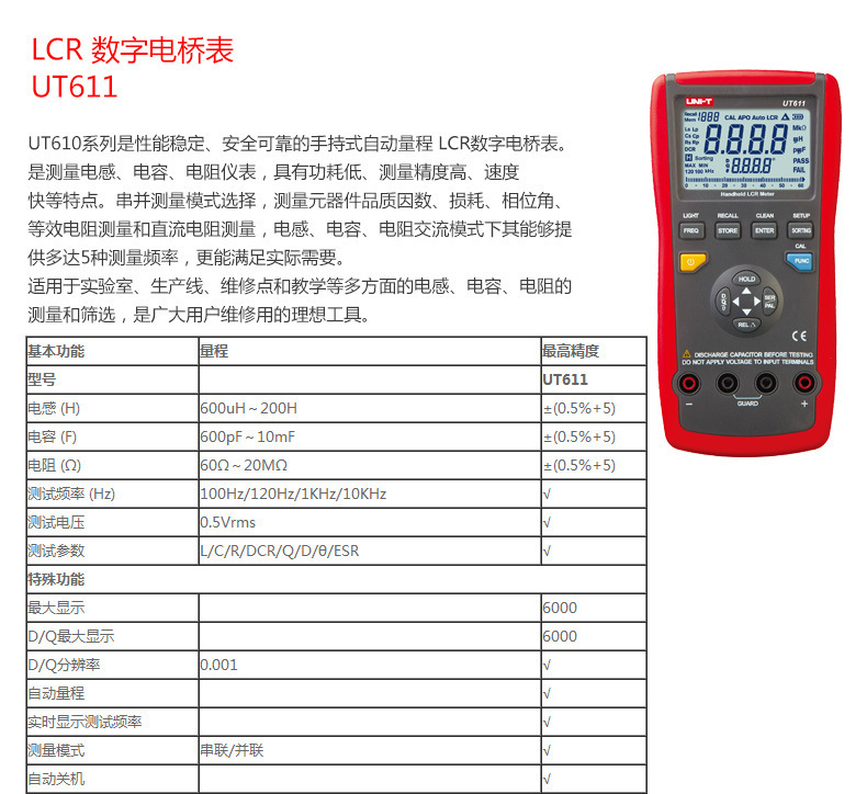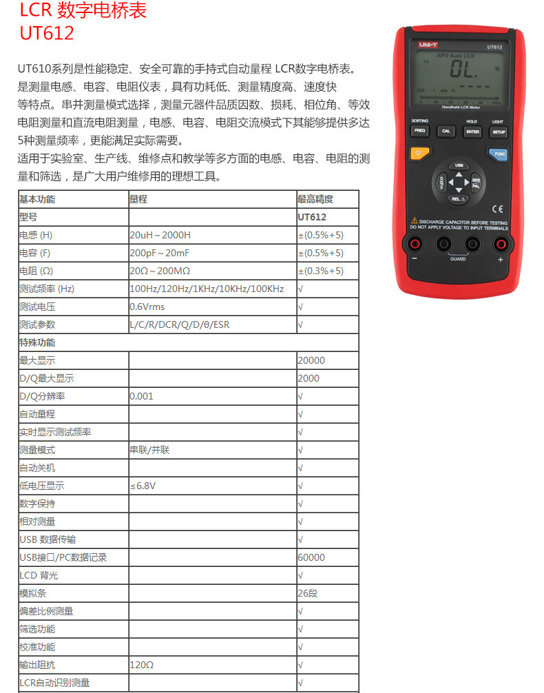 Unide UT611/UT612 высокоточный портативный цифровой мост LCR/конденсатор/индуктивность/измеритель сопротивления оригинальные товары
