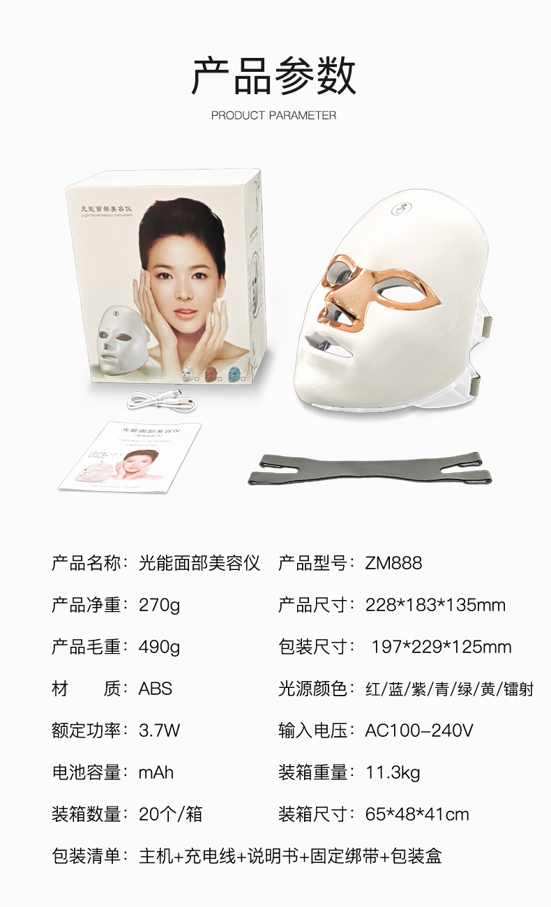 Перезаряжаемая ручная сенсорная светодиодная косметическая маска, красочная фотонная омолаживающая косметическая маска, инструмент для лица