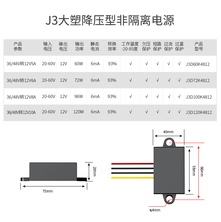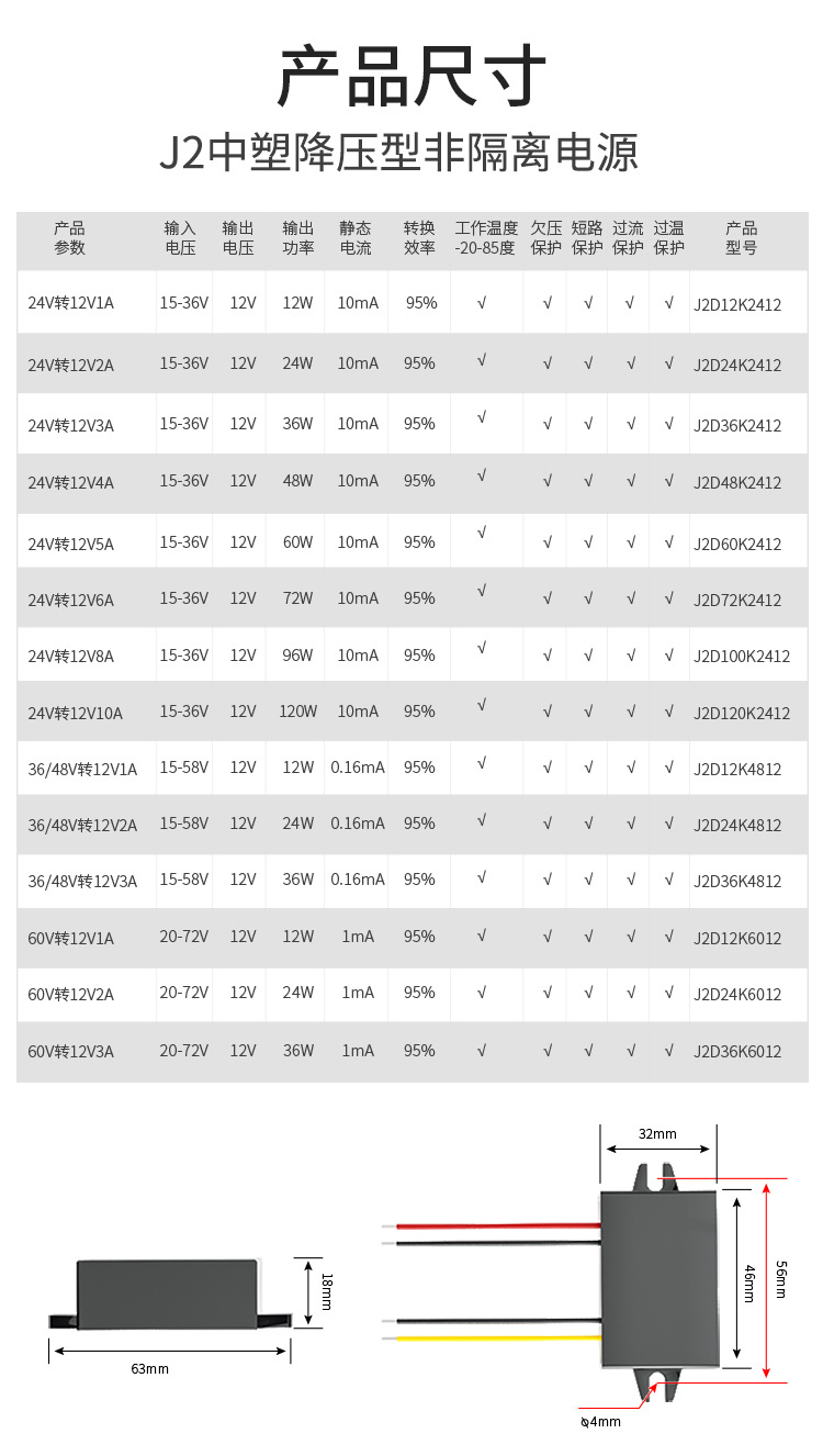 24V до 12V1A Средний пластик J2,24V до 12V2A Средний пластик J2,24V до 12V3A Средний пластик J2,24V до 12V4