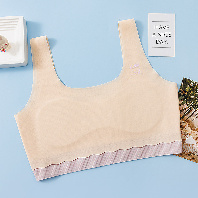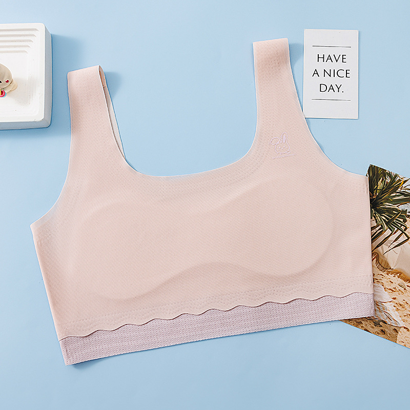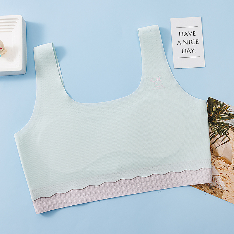 Дышащий бюстгальтер контрастных цветов для девочек, одноступенчатый, с оберткой на груди, бесшовное нижнее белье Ice Silk с фиксированной подкладкой на груди, студенческое нижнее белье
