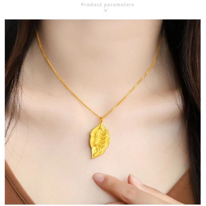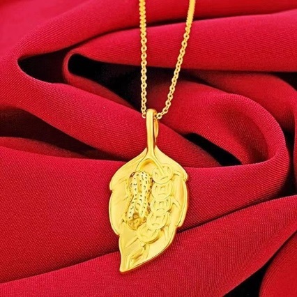 Золотая подвеска в виде однолистного сокровища; черная веревка