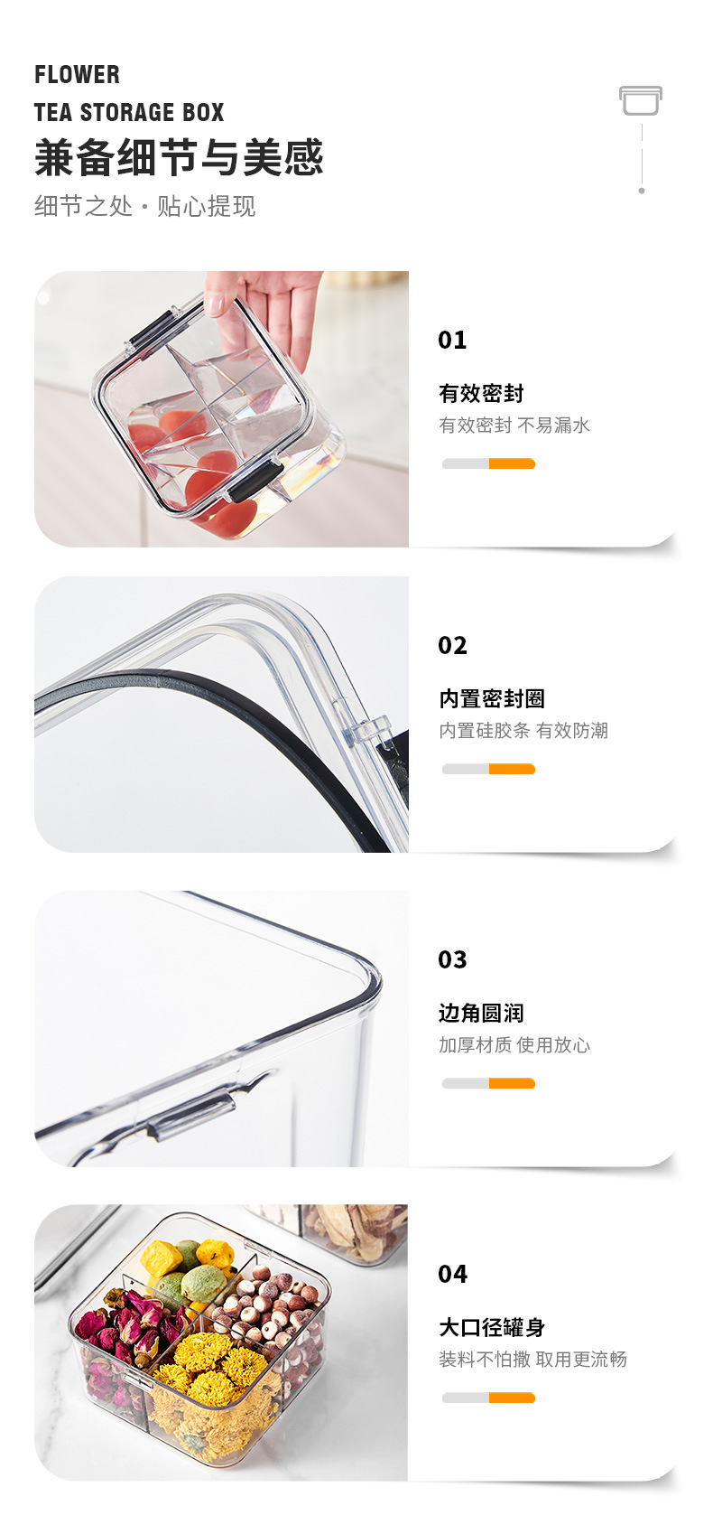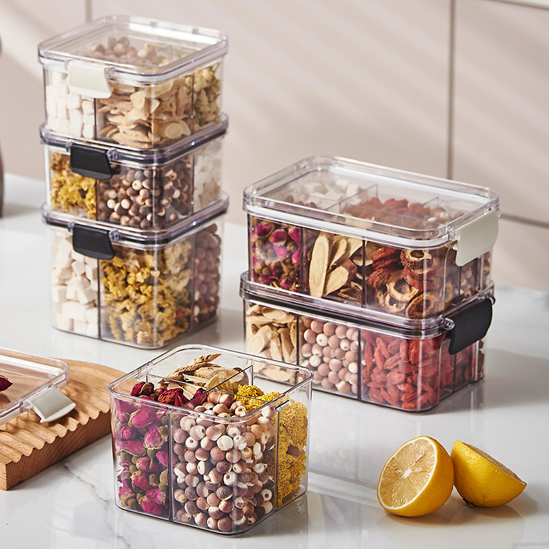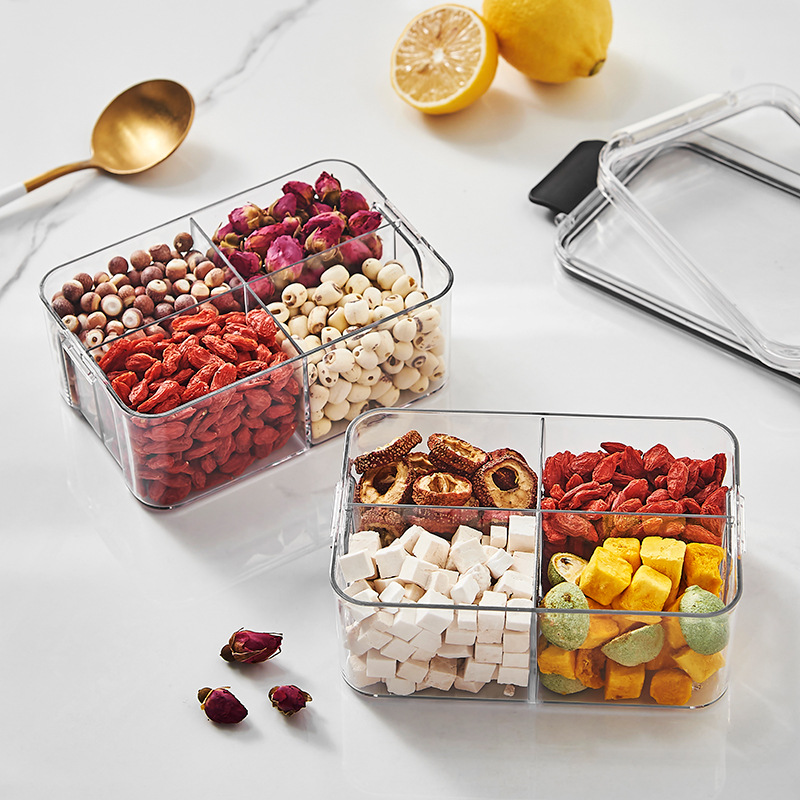 Квадратная Ароматизированная коробка для упаковки чая 460 мл пластиковая герметичная банка с четырьмя отсеками для хранения пищевых продуктов более четкая банка для хранения
