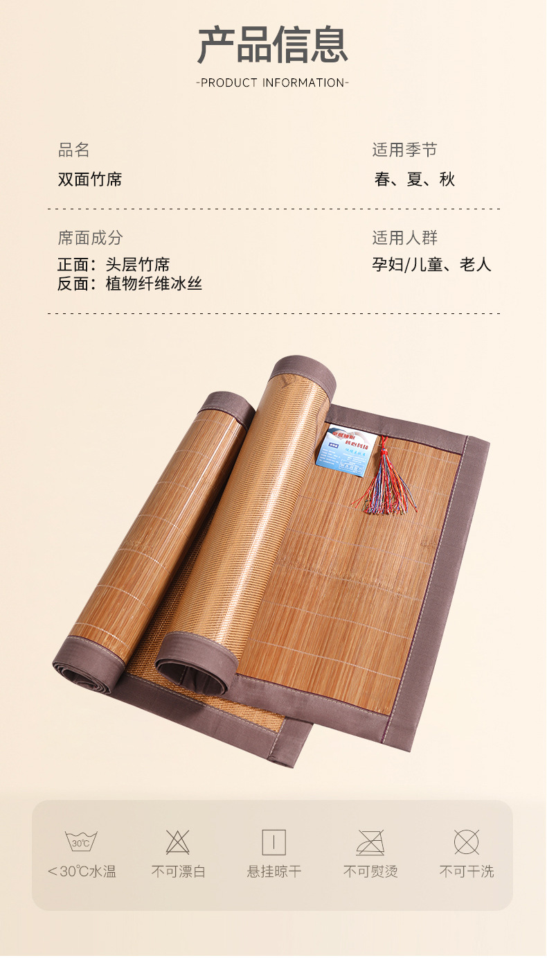 Бамбуковый коврик карбонизированный ледяной шелк, бамбуковый коврик, доступен двусторонний детский сад, сон, студенческое общежитие, односпальная кровать, летний коврик