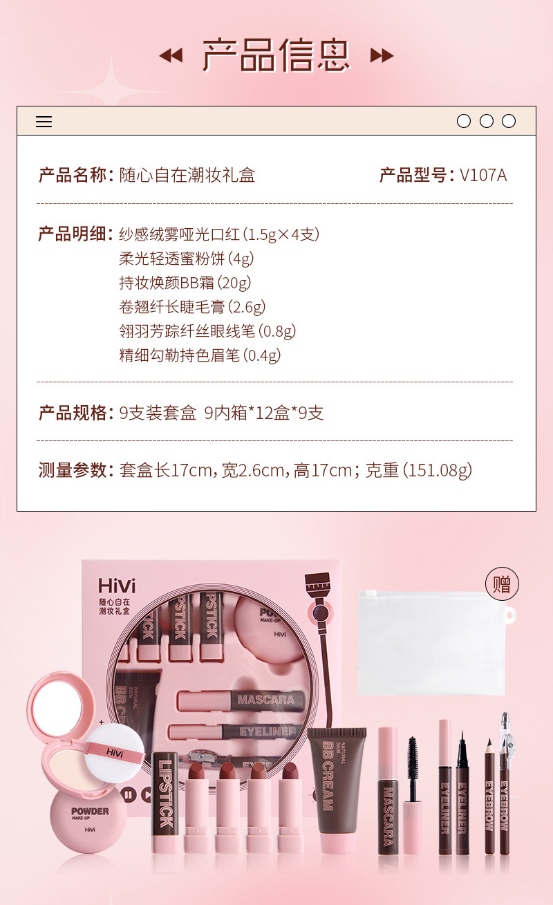 Hivi Бесплатная мода макияж Подарочная коробка девять частей помада пудра Тушь для бровей карандаш костюм трансграничная Внешняя торговля макияж
