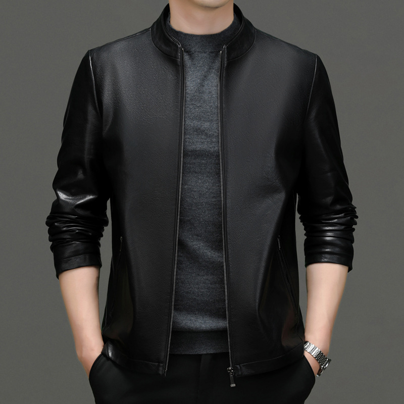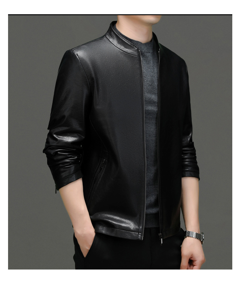 Фабричный магазин Haining Кожаное пальто Мужская короткая деловая куртка из искусственной кожи с лацканами, осенняя одежда, кожаная куртка для пап средних лет