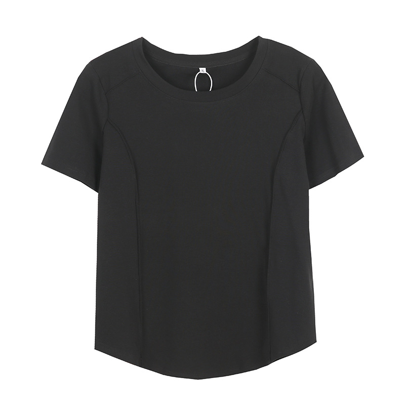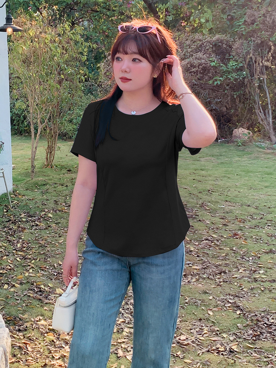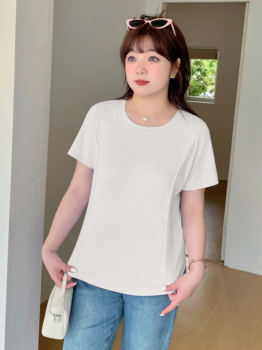 Женская футболка больших размеров с короткими рукавами и обычным вырезом на плечах, новый весенний стиль для полных девушек, свободный топ с круглым вырезом для ношения под одеждой 120141