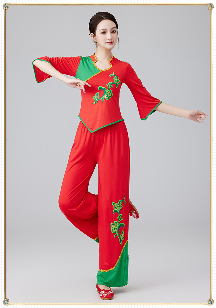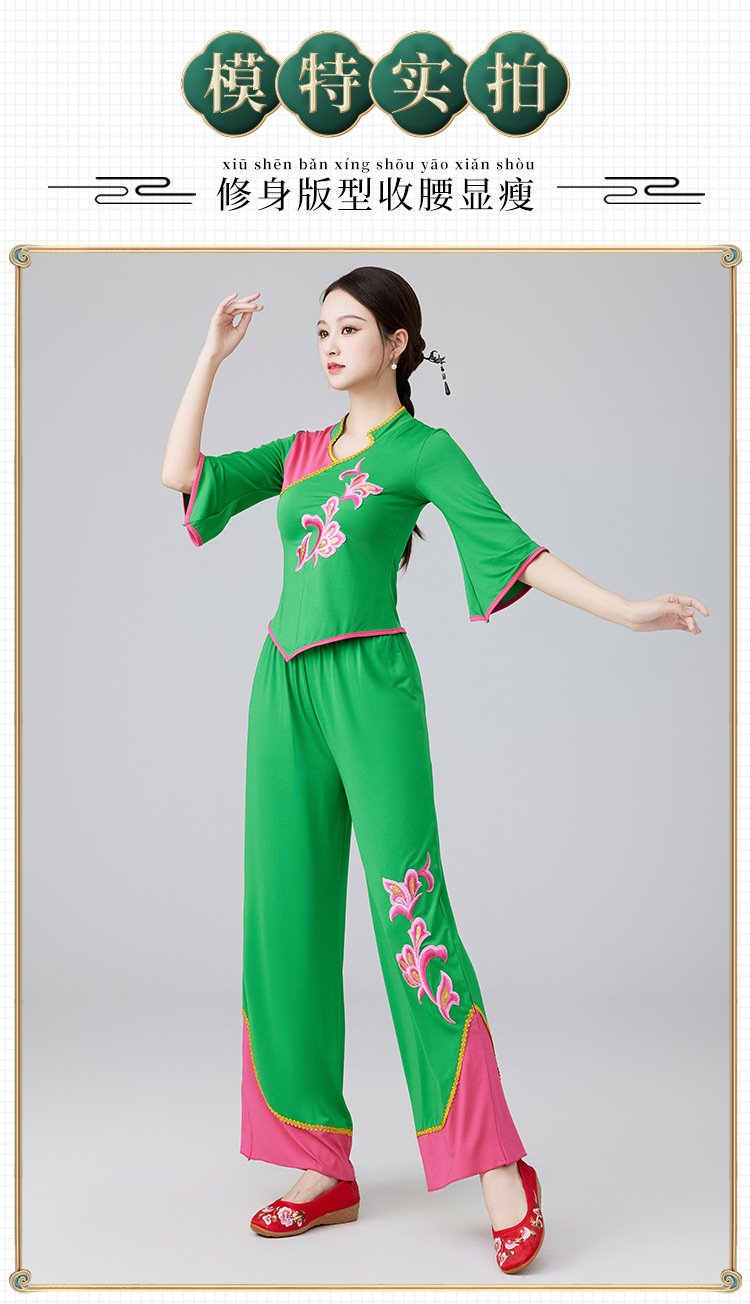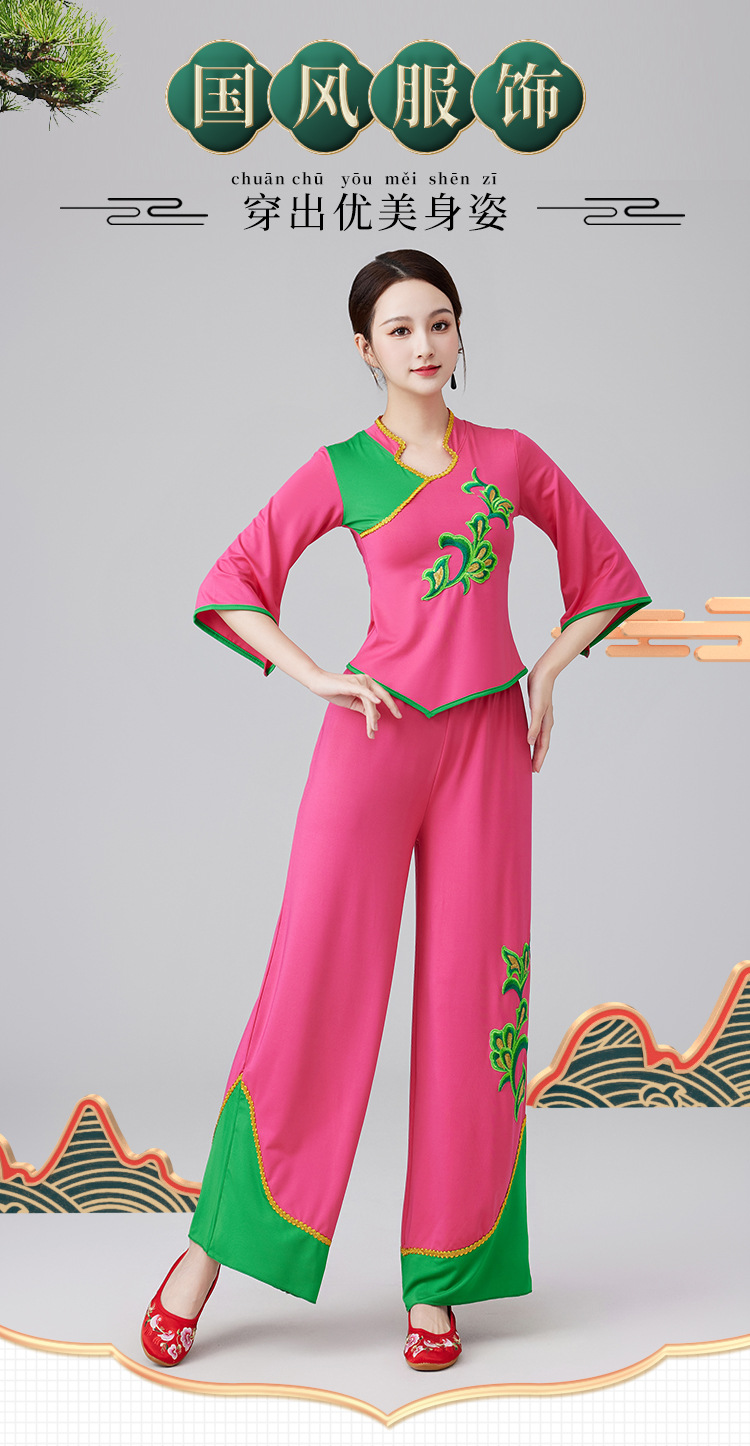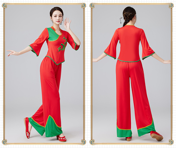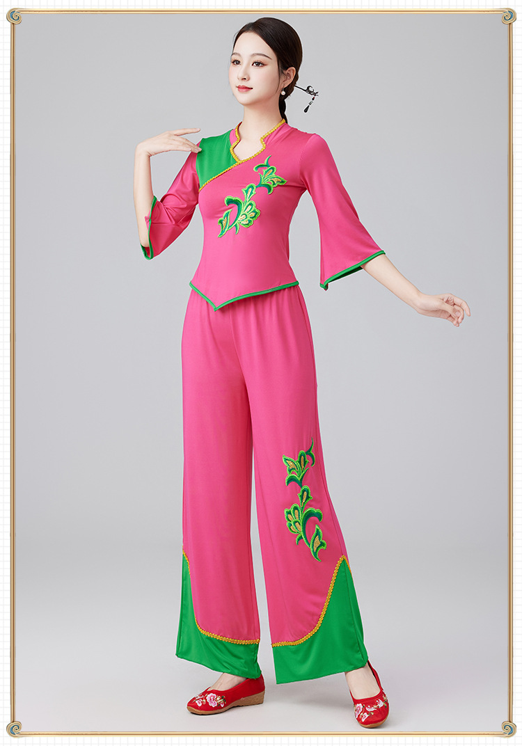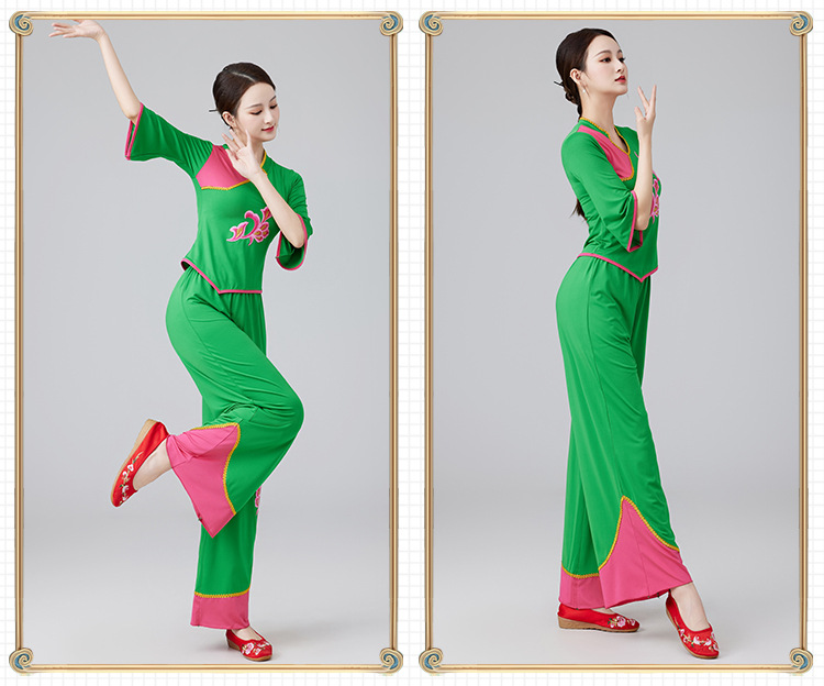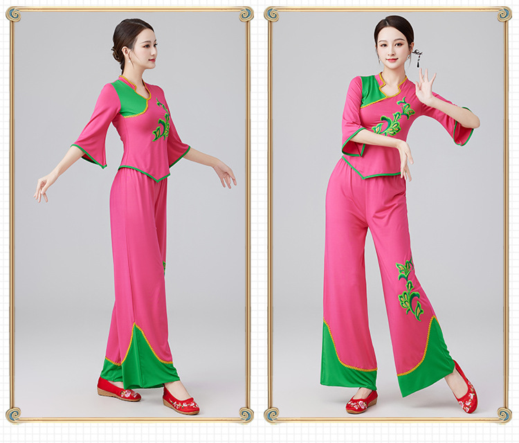 2401 квадратная танцевальная одежда новый костюм женский воротник-стойка этнический танец вентилятора Янгко костюм групповой костюм для выступлений