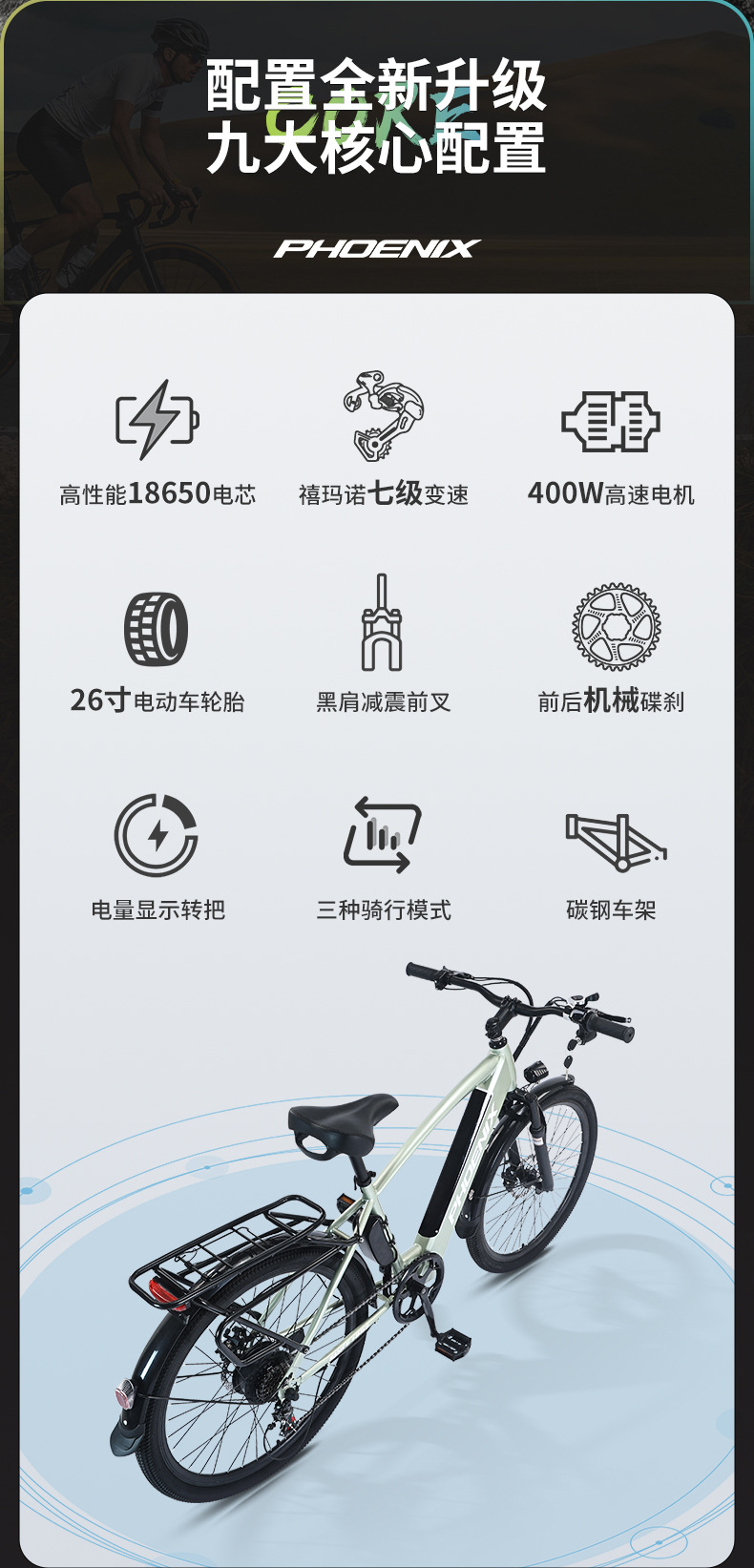 Рабочая одежда для электрического велосипеда Phoenix, новый национальный стандарт, литиевая батарея 26inch самокат для отдыха с регулируемой скоростью, легкий аккумуляторный автомобиль с электроприводом