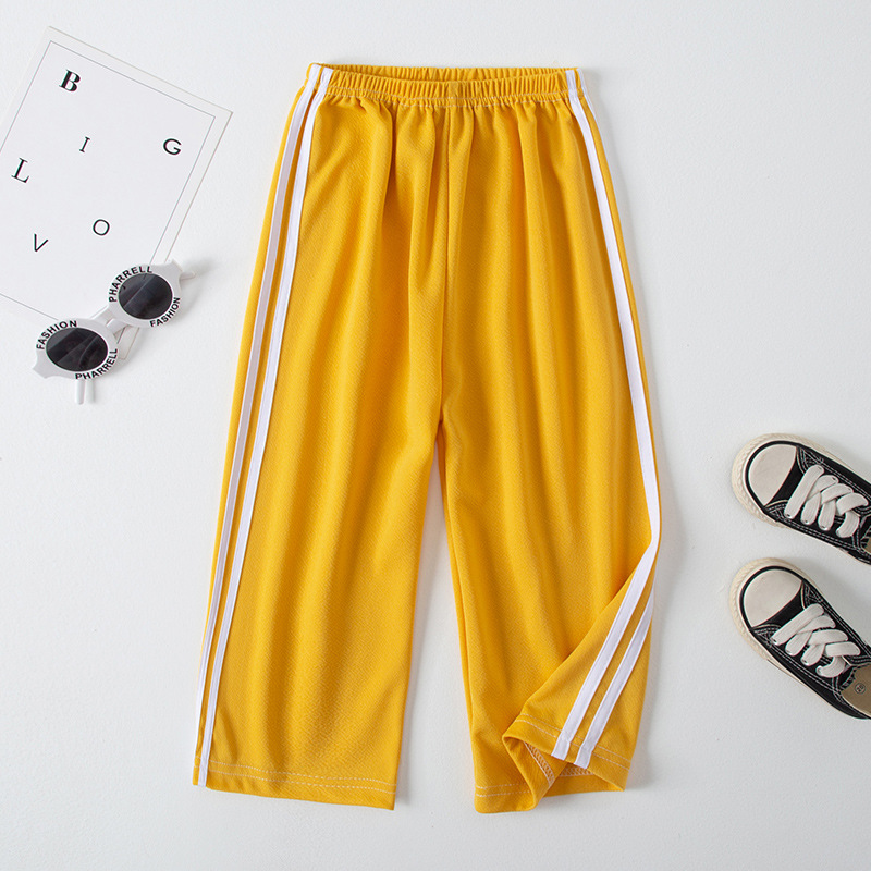Новые модные брюки для девочек и мальчиков, подходящие для активного отдыха, спортивные повседневные брюки, свободные прямые брюки, слегка расклешенные, широкие брюки для детей постарше.