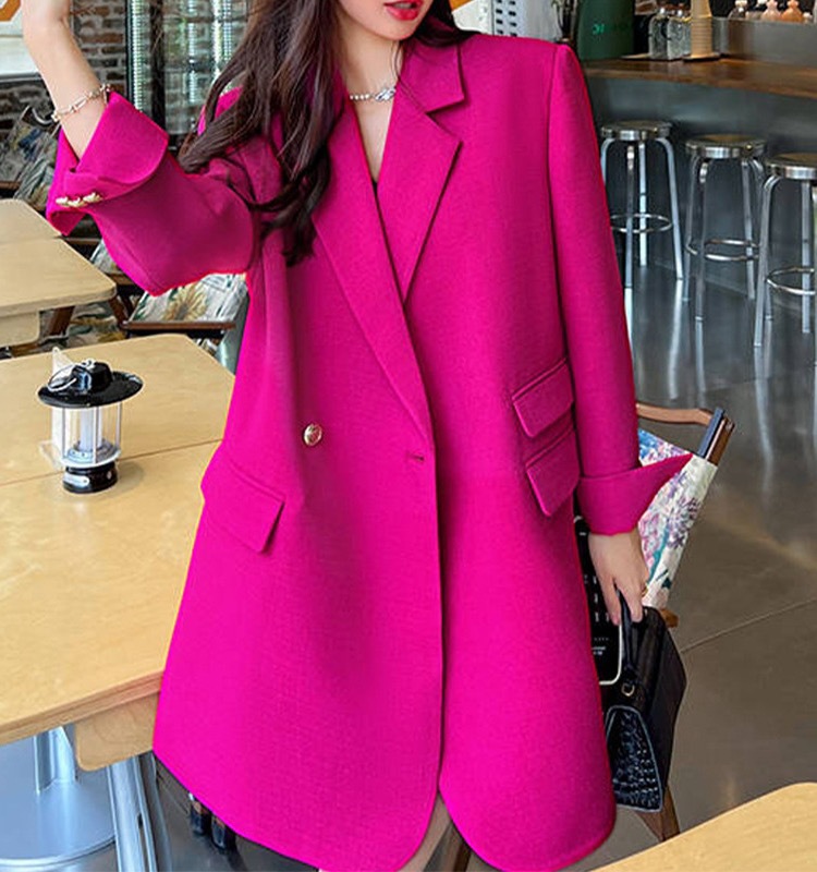 Плюс размер женский розовый красный пиджак женский весенне-осенний пухленький пиджак средней длины в западном стиле [0120]