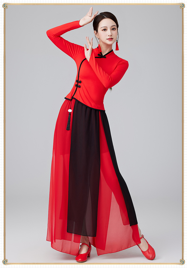 2402 Новый Классический танец воротник танцевальная одежда Audel Топ элегантная шифоновая юбка квадратная одежда для танцевальных выступлений