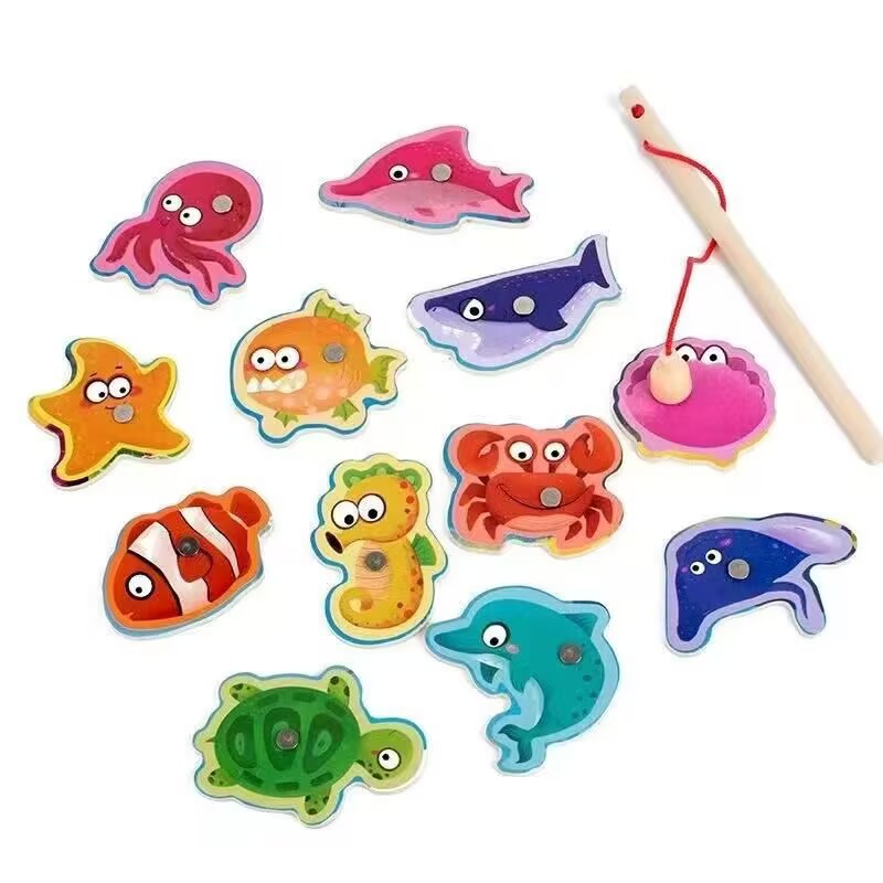 Магнитная бочка, тарелка для океанской рыбалки, деревянные маленькие игрушки для детей, раннего образования, развивающие забавные магнитные строительные блоки, набор