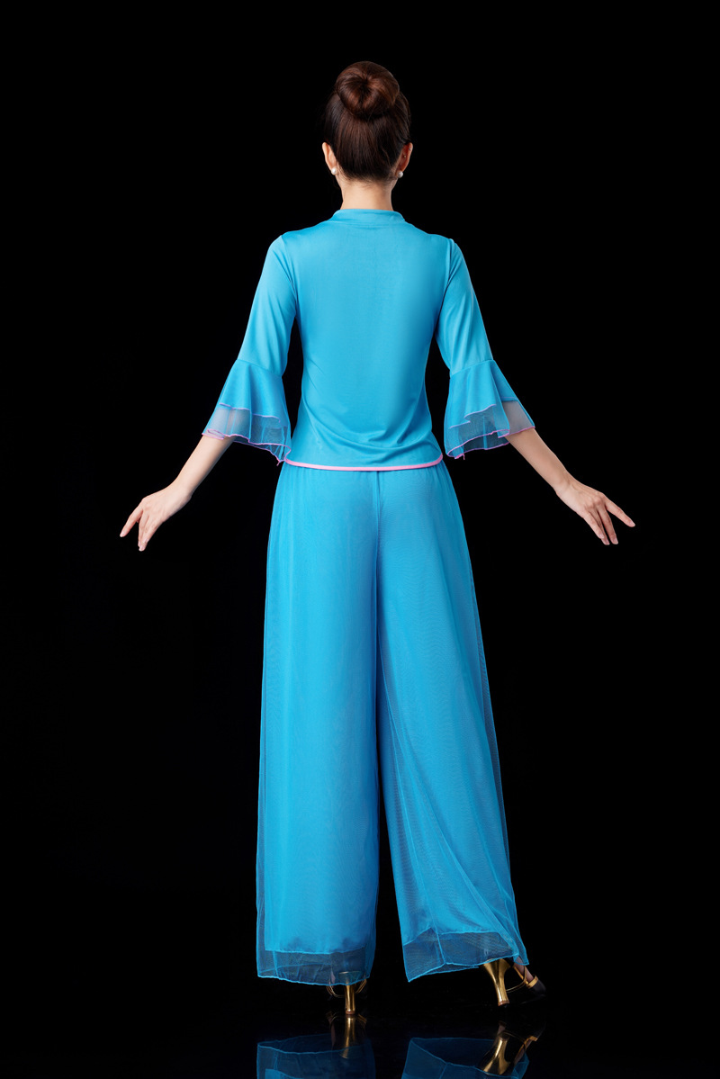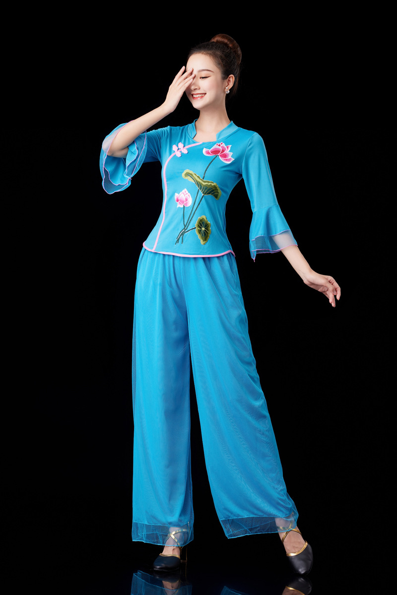 广场舞衣服尺码偏小: 牛奶丝面料。有弹性,有垂感,