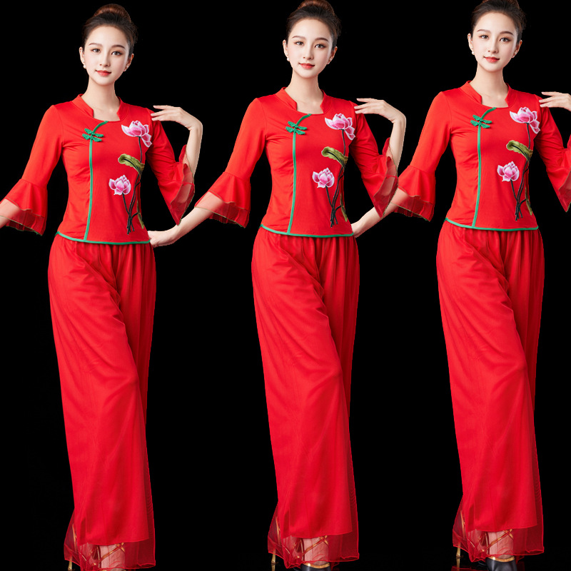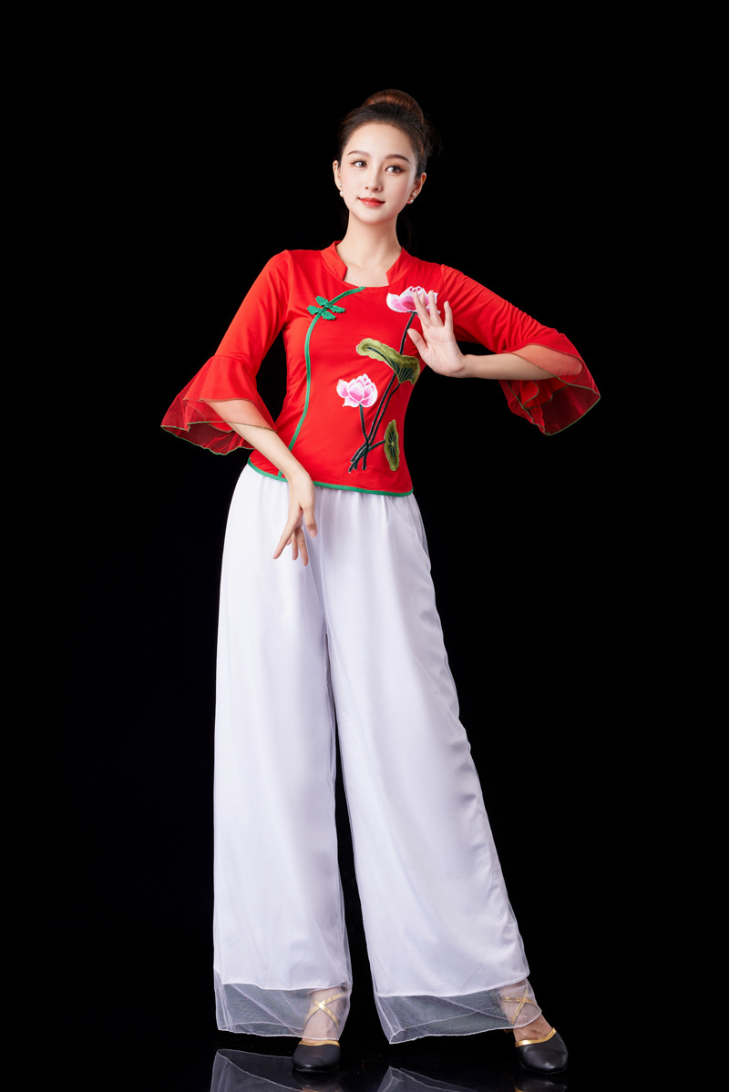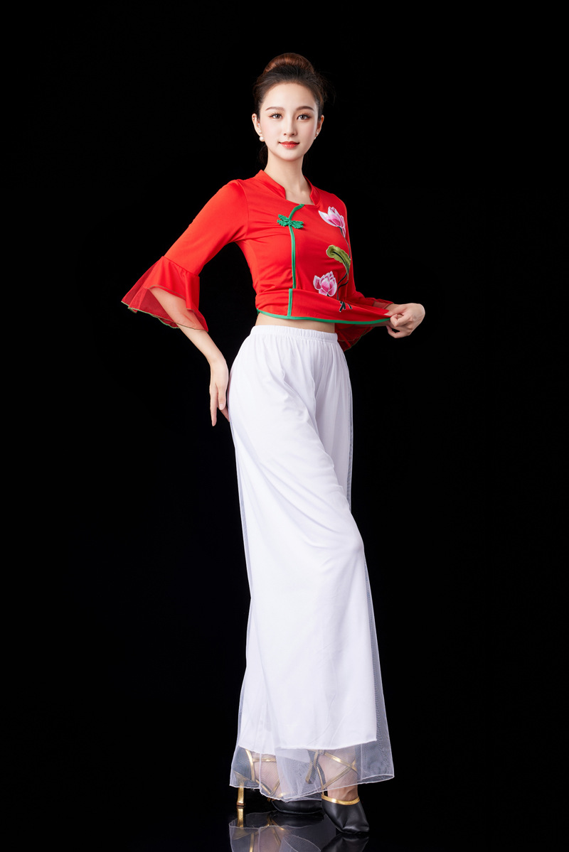 Красный топ с красным рукавом; Лотос средний рукав красный топ белый сетчатый брюки; Лотос средний рукав розовый топ розовая сетка брюки; Лотос с средним рукавом озера синий топ; Лотос цевый красный рубашка с расклешенными рукавами; Лотос Одиночное озеро Голубой расклешенные рукава; Топ с розовыми рукавами с цветком лотоса; Одиночные красные сетчатые брюки; Одиночное озеро синие сетчатые брюки; Одиночные розовые брюки из сетки; Красные сетчатые брюки с длинными рукавами лотоса; Лотос красный топ с длинными рукавами белые брюки из сетки; Lotus Lake Blue с длинными рукавами топ Lake Blue Net брюки; Одиночный лотос красный топ с длинными рукавами; Одноцветный лотос синий топ с длинными рукавами; Одноцветный лотос розовый топ с длинными рукавами