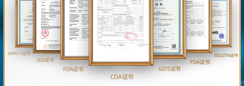 本款产品仅供跨境贸易,不做内销市场,非商务合作使用,下单即视为样品,可提供FDA、GMPC等注册证书。