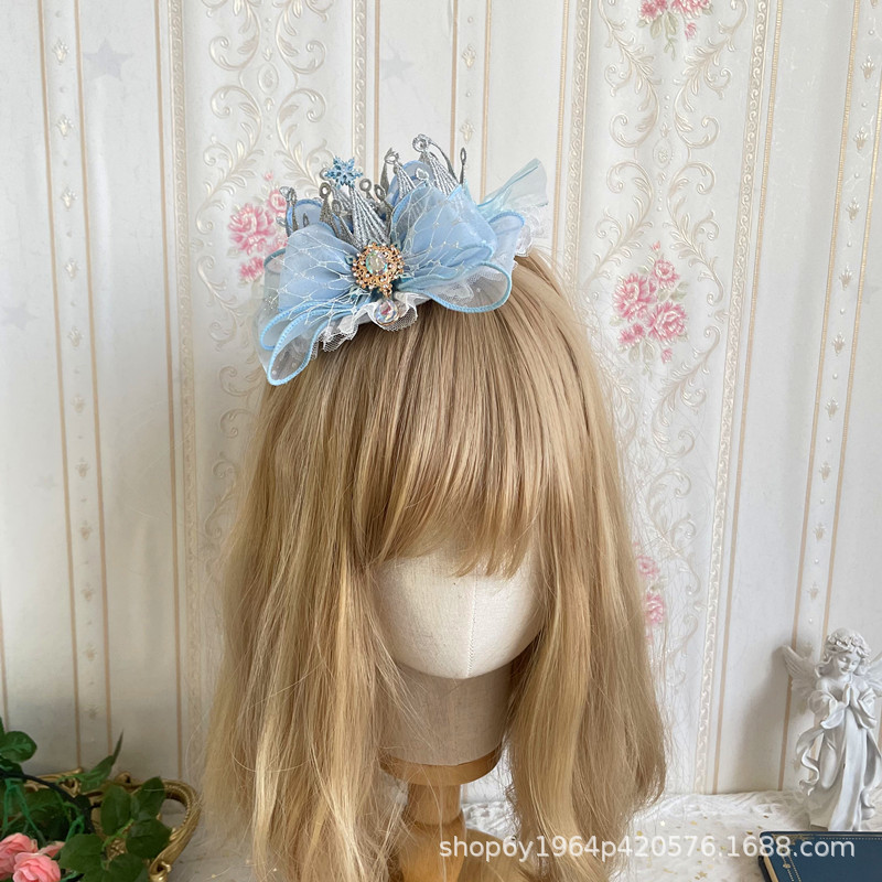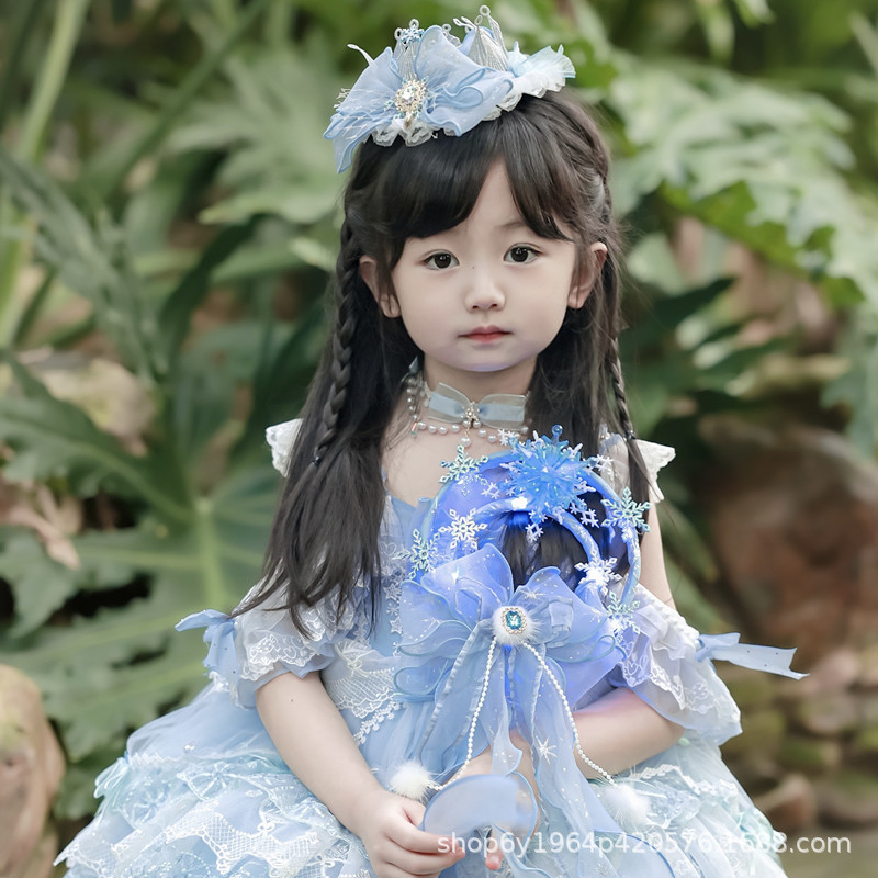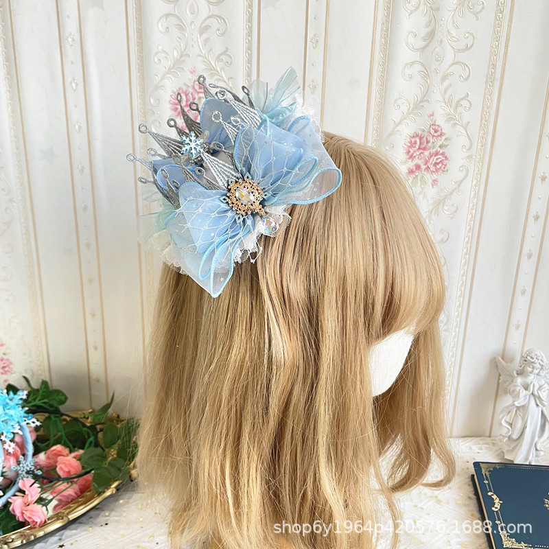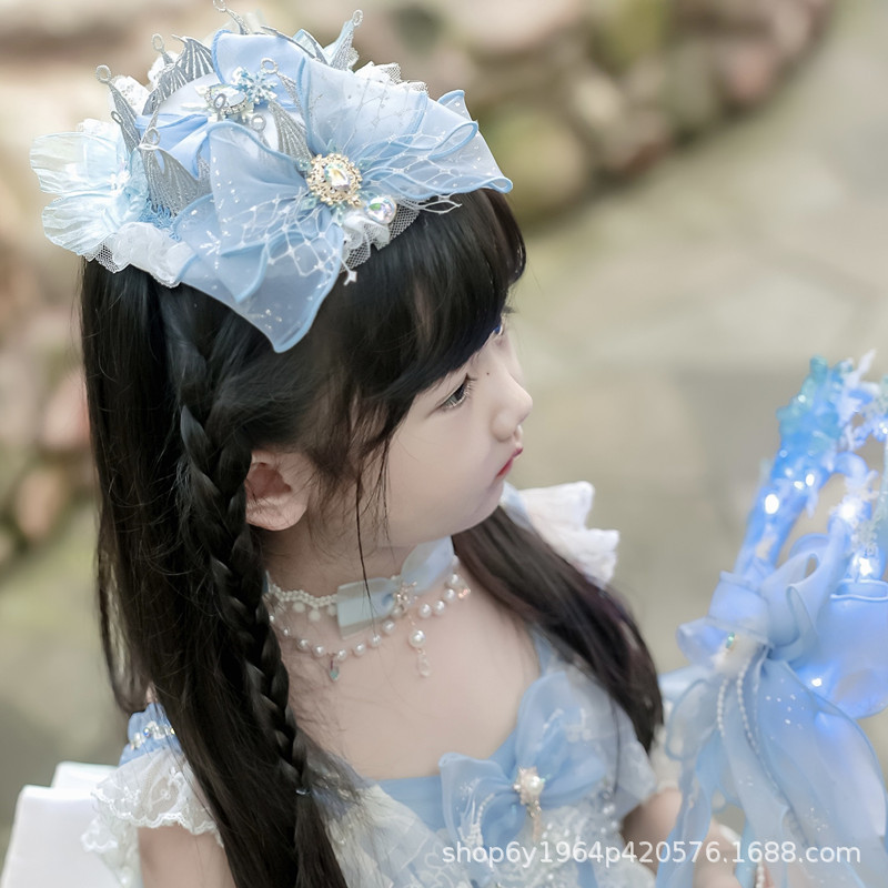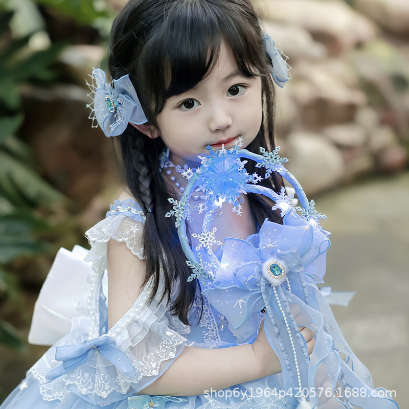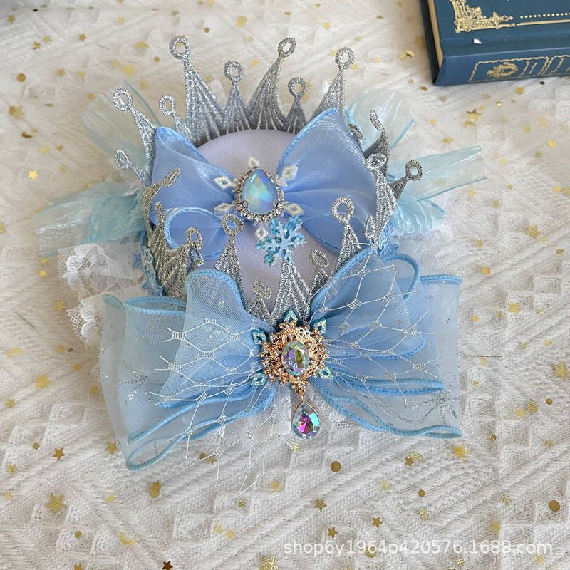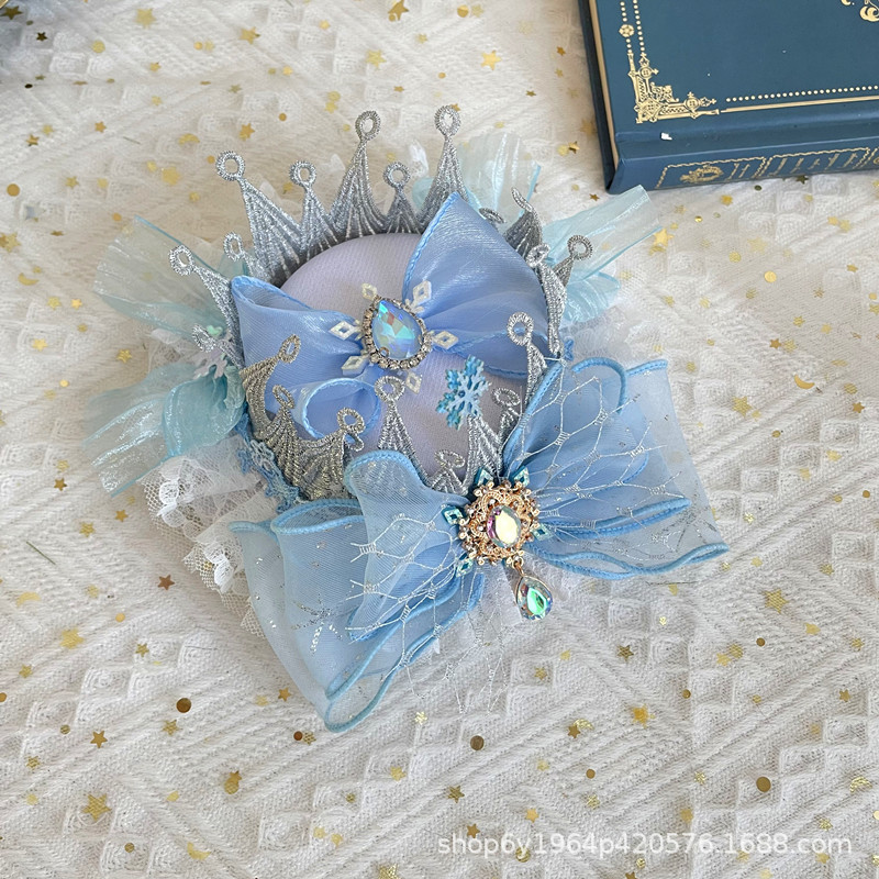 冰雪奇缘洛丽塔发饰礼帽蓝色爱莎公主发夹雪花儿童后脑勺头饰手杖