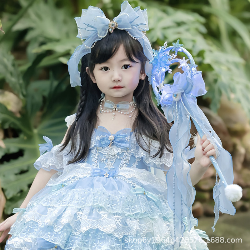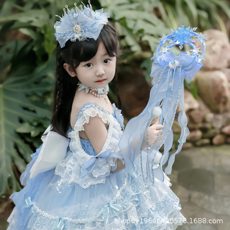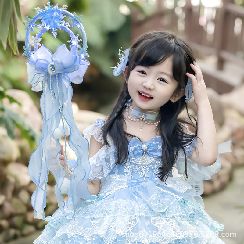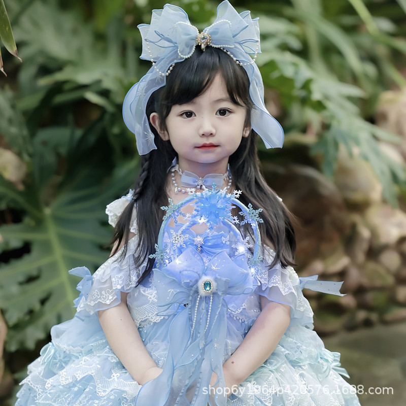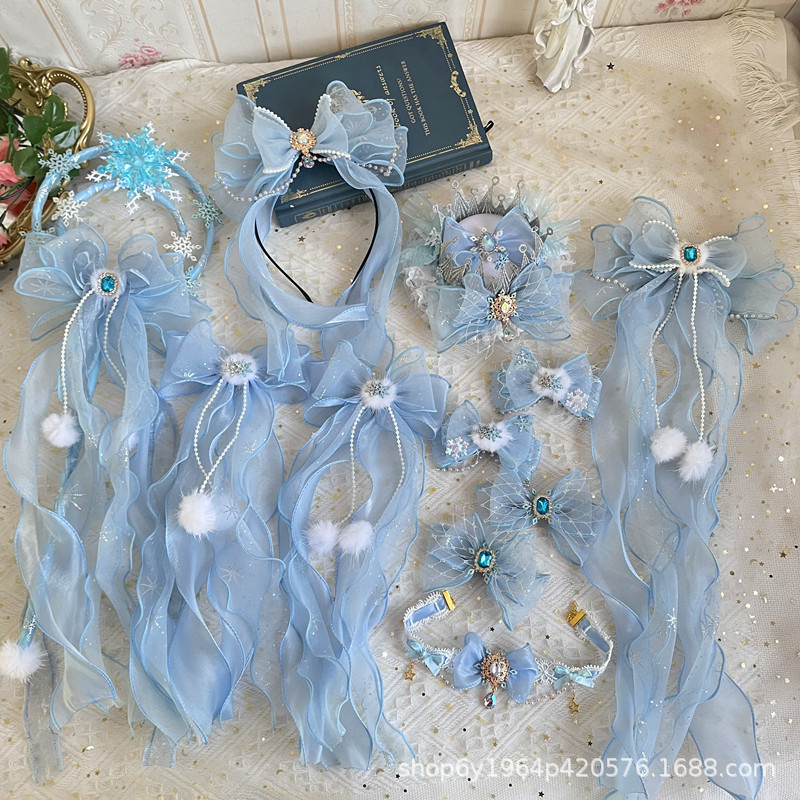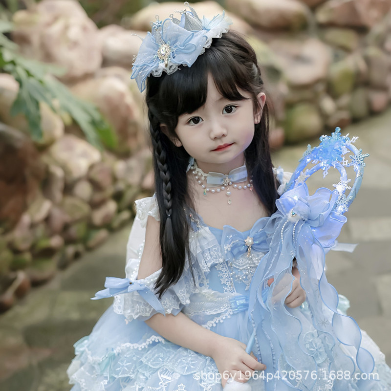 冰雪奇缘洛丽塔发饰礼帽蓝色爱莎公主发夹雪花儿童后脑勺头饰手杖