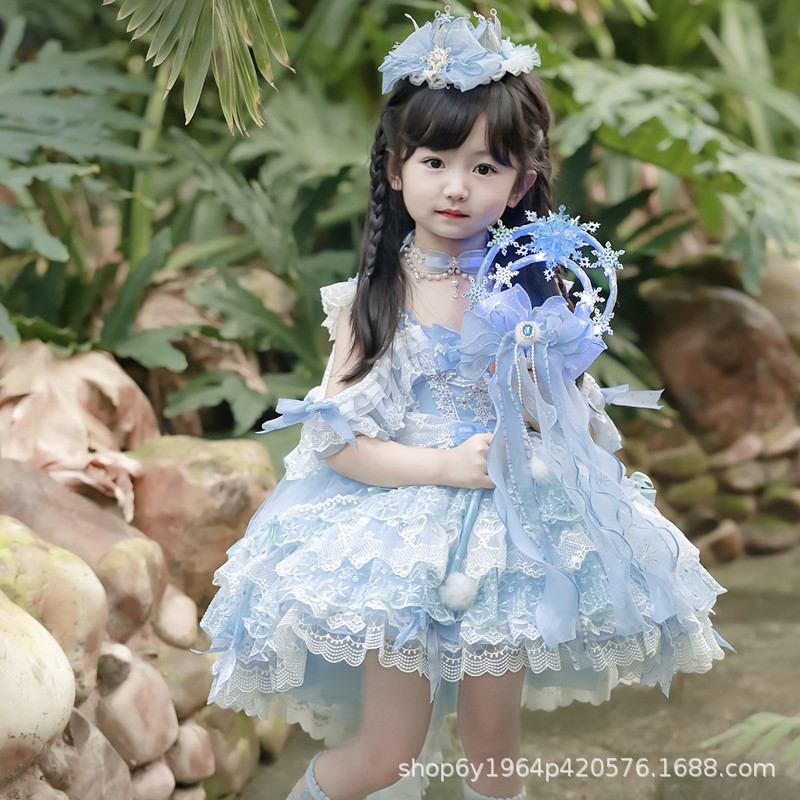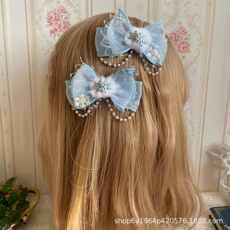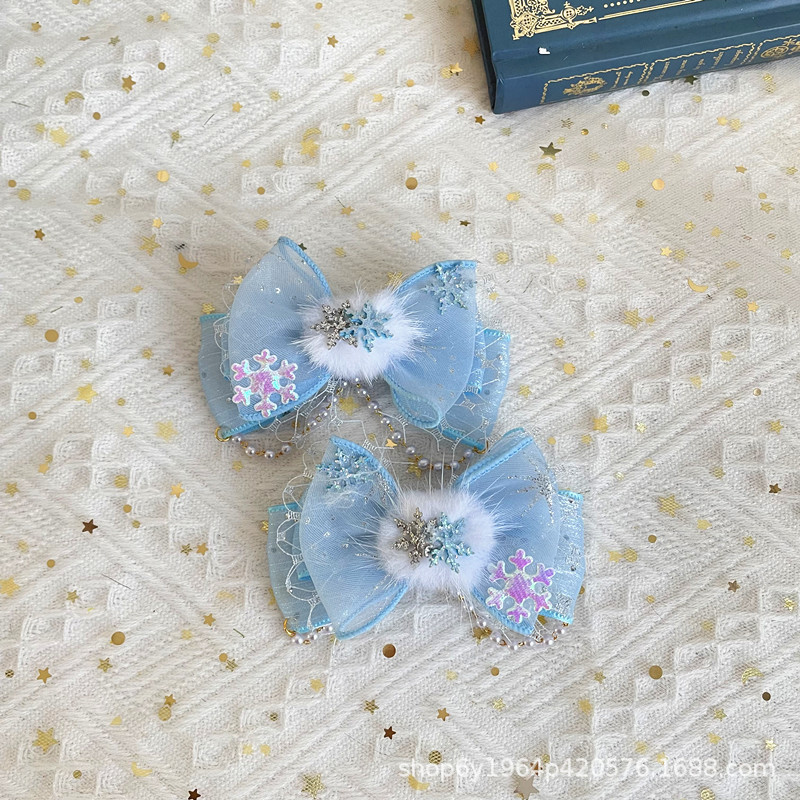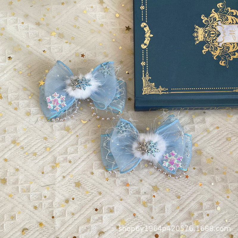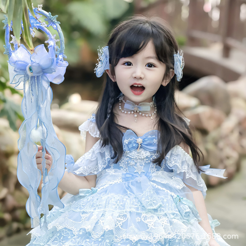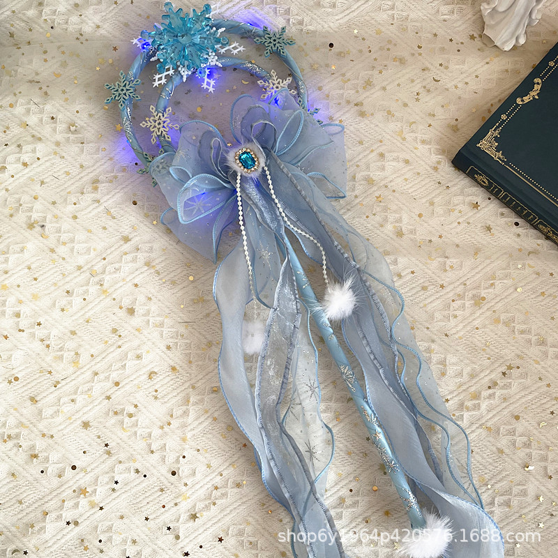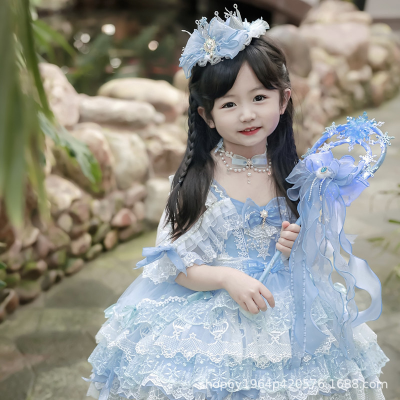 冰雪奇缘洛丽塔发饰礼帽蓝色爱莎公主发夹雪花儿童后脑勺头饰手杖