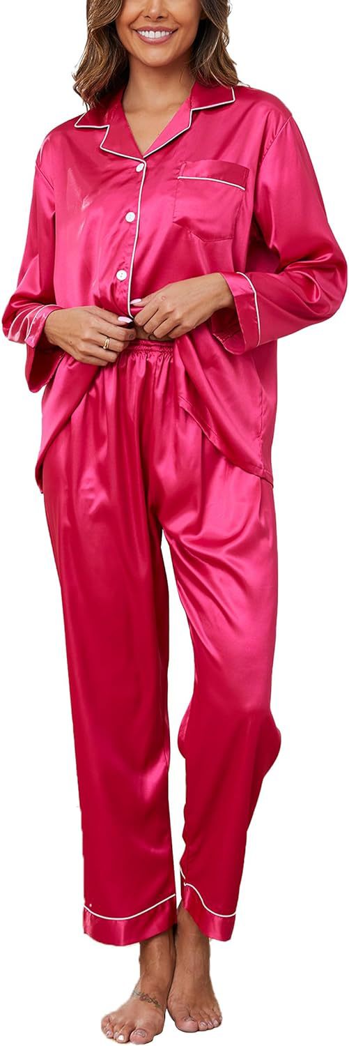 Трансграничная независимая станция Amazon New Ice Silk пижамы, женский костюм из двух частей, Шелковый костюм с длинным рукавом, женская домашняя одежда больших размеров