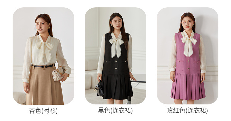 Абрикос [рубашка QI5086]; Черное [Платье QI5297]; Розово-красный [платье QI5297]