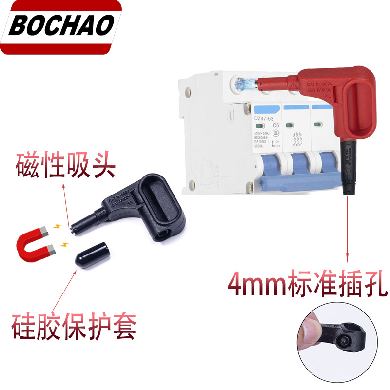 Магнитная насадка для мультиметра Bochao, 4 мм, штекер типа «банан», магнитный терминал, без пайки, для измерения напряжения аккумулятора