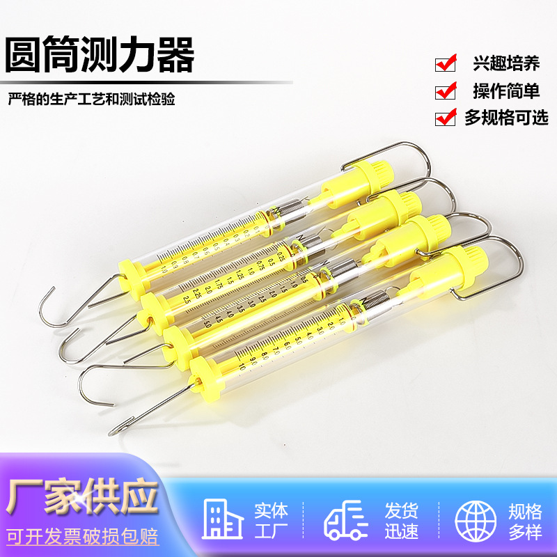 Цилиндрический измеритель силы (пружинная шкала)-1N/100г; Цилиндрический измеритель силы (пружинная шкала) — 2,5 Н/250 г; Цилиндрический измеритель силы (пружинная шкала) — 5 Н/500 г; Цилиндрический измеритель силы (пружинная шкала) — 10 Н/1000 г; Цилиндрический измеритель силы (пружинная шкала) — 30 Н/3000 г; Цилиндрический измеритель силы (пружинная шкала) — 50 Н/5000 г