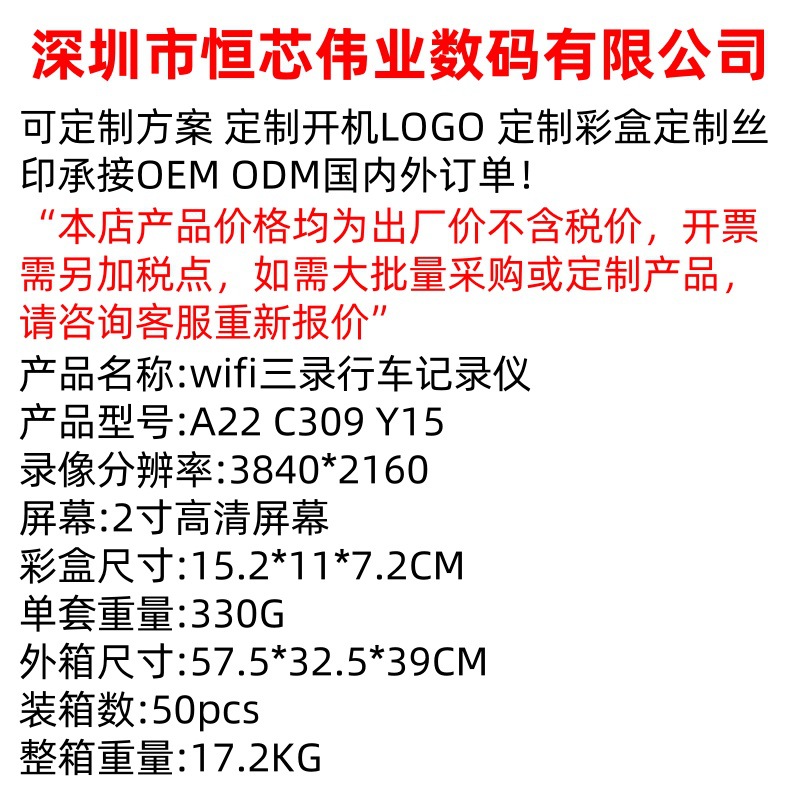 Новый трансграничный регистратор C309 HD с обратным изображением, трехлинзовый автомобильный парковочный рекордер