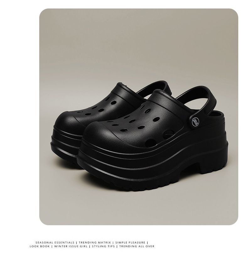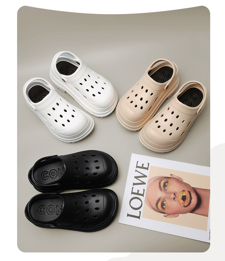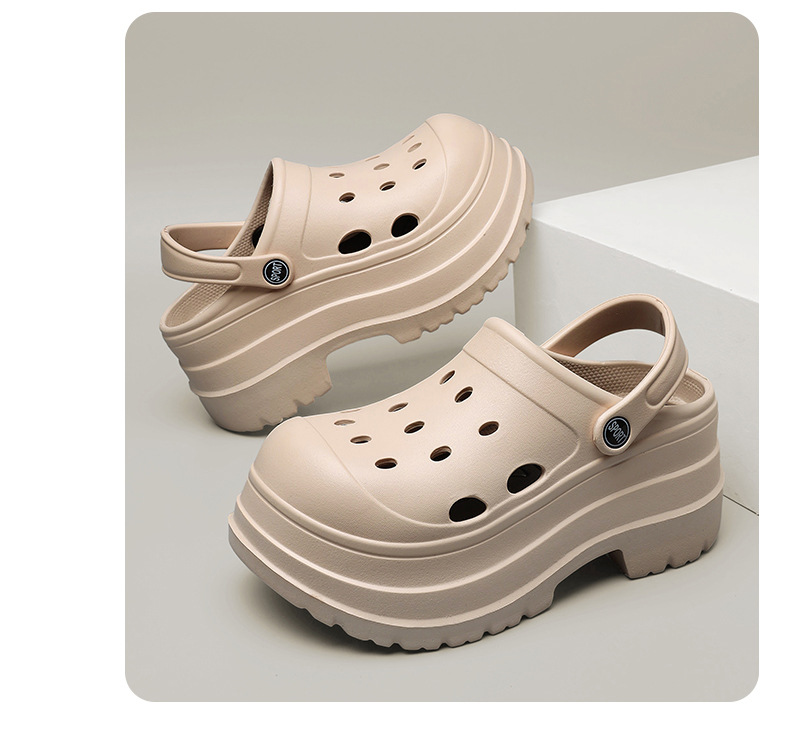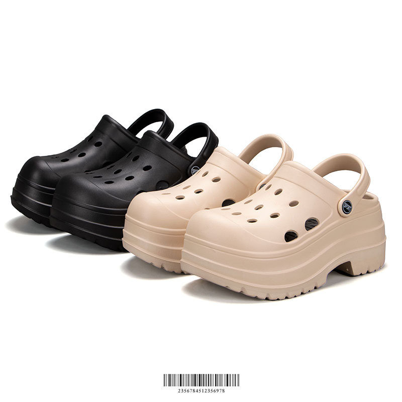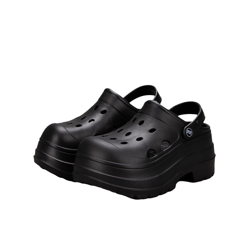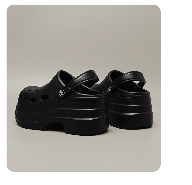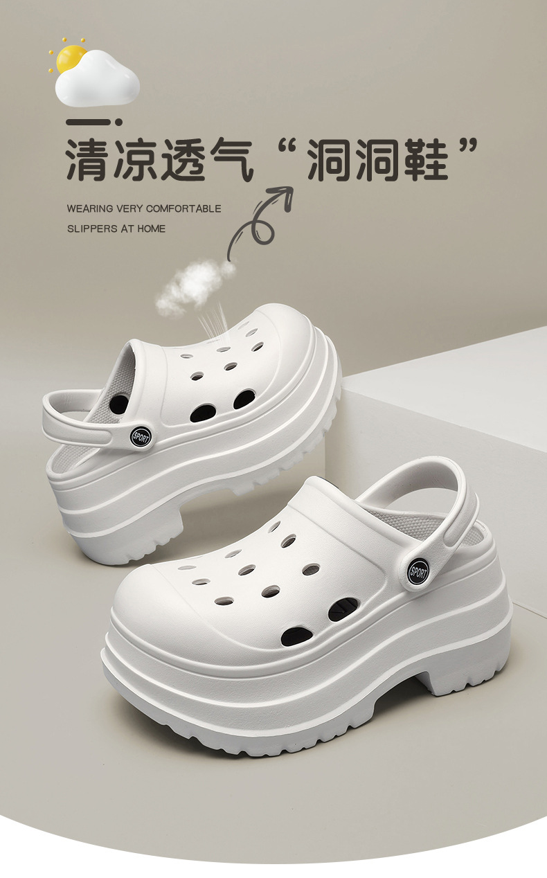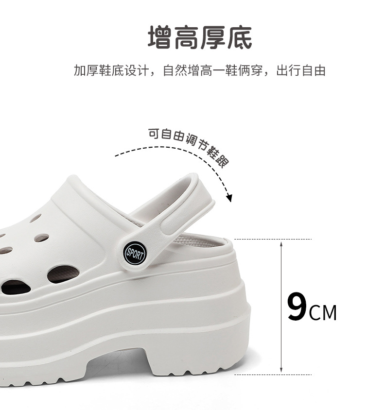 Весна и лето, новые простые модные однотонные туфли на высоком каблуке и платформе с дырками, женские уличные пляжные сандалии, увеличивающие рост оптом