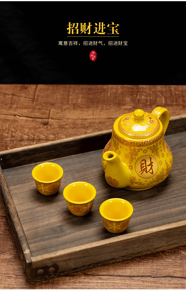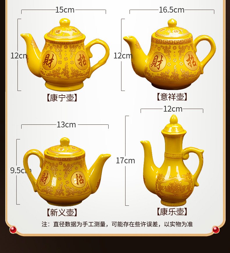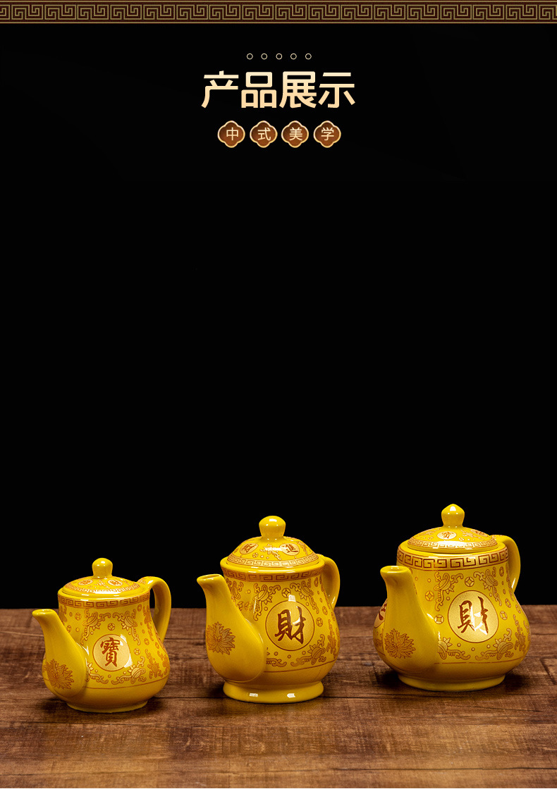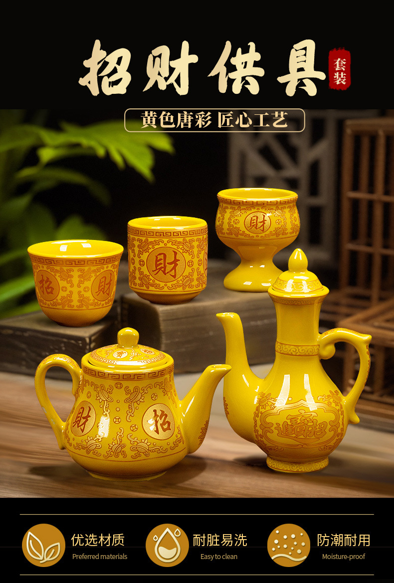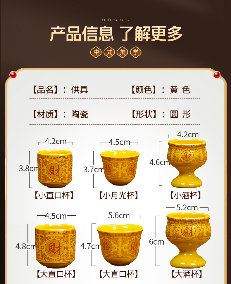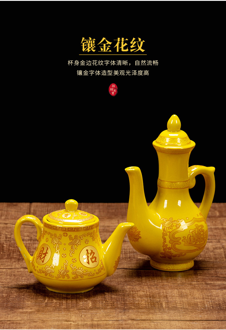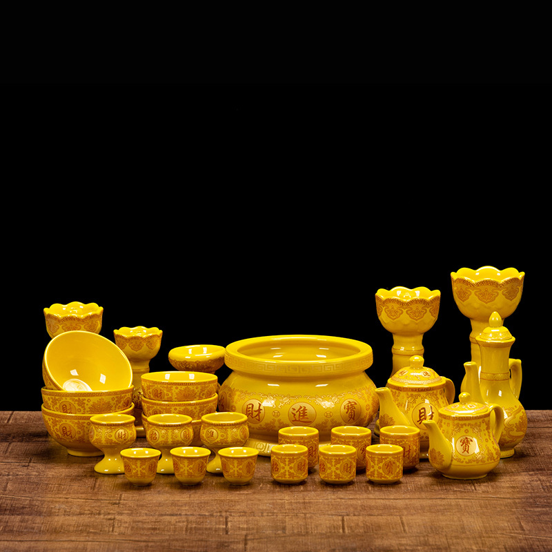 желтый бокал для вина; желтый бокал для вина; Желтая большая чашка с прямым ртом; Желтая маленькая чашка с прямым ртом; Большая желтая чашка лунного света; Желтая чашка лунного света; Желтый классический горшок; Желтый благоприятный горшок; Желтый горшок для корнинга; Желтая фляга-кенл