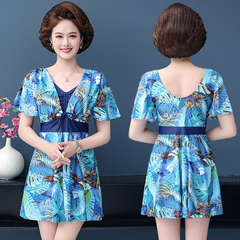 Hot Spring купальник больших размеров, Женская юбка-Боксер с разрезом, консервативный купальник для мамы среднего возраста, пухлая девушка оптом
