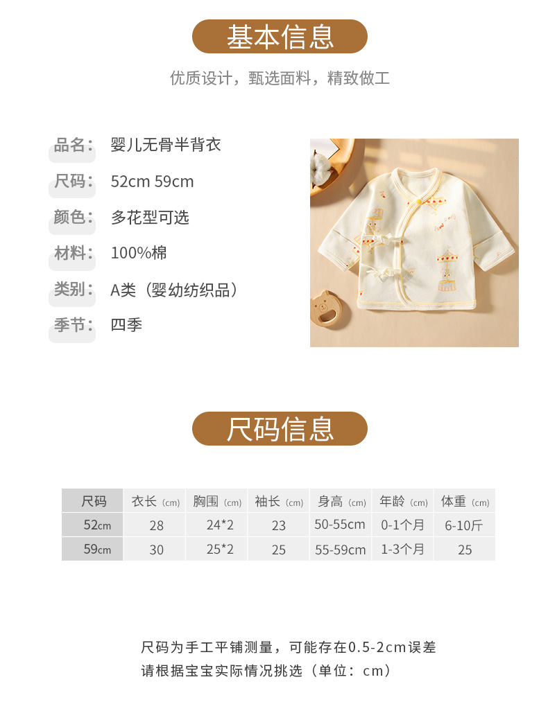 Весна 2024 нижнее белье для новорожденных без костей Хлопок Four Seasons Velcro половина спины Пижама детский топ на один месяц