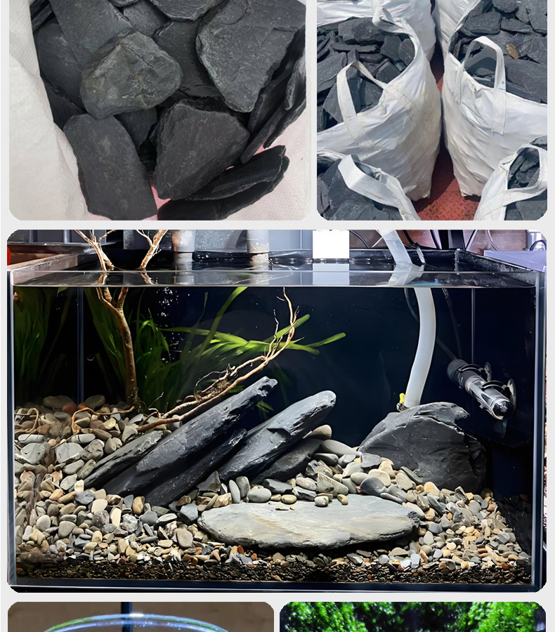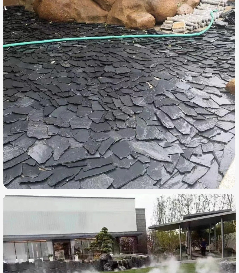 Черные сланцевые чипсы, подводные чипсы, натуральный асимметричный сланцевый водный элемент для дна бассейна, сланцы, чипсы, сланцы
