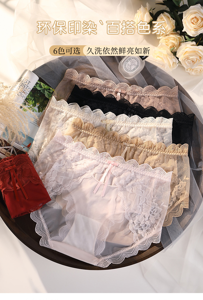 Летний новый стиль, тонкая атласная сетка, сексуальное горячее искушение, осторожное полое 10A, антибактериальное кружевное нижнее белье с расширенной промежностью для девочек, чистое желание, большой размер